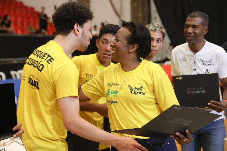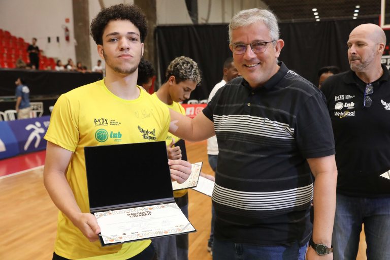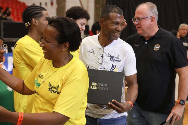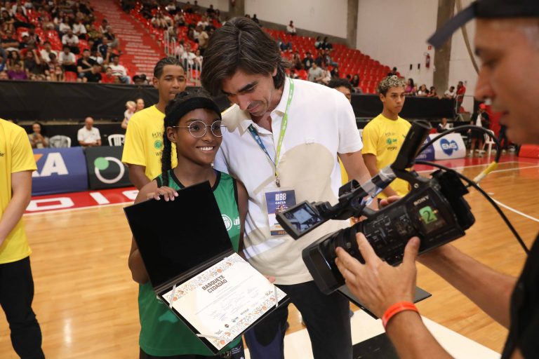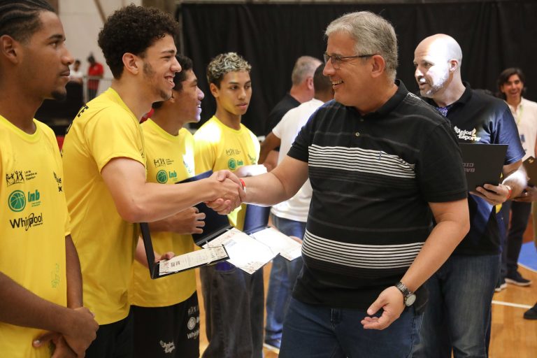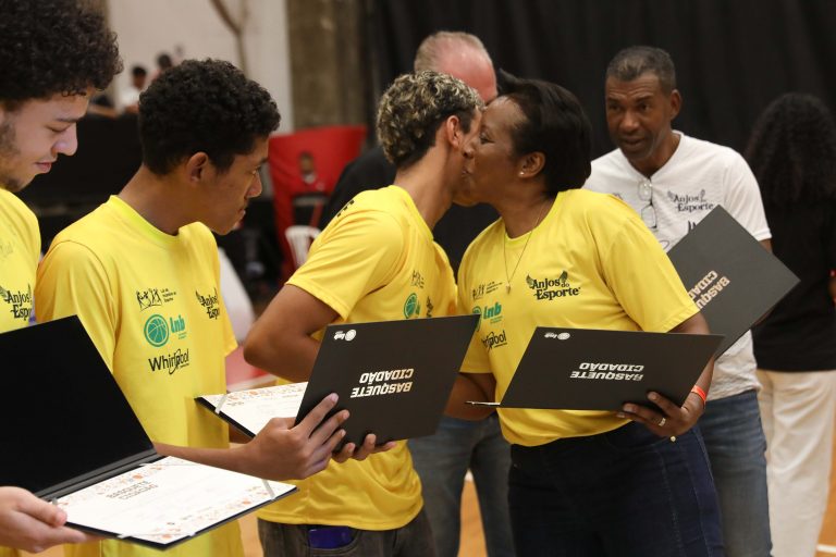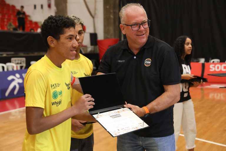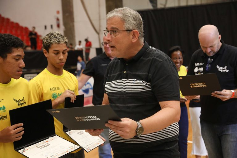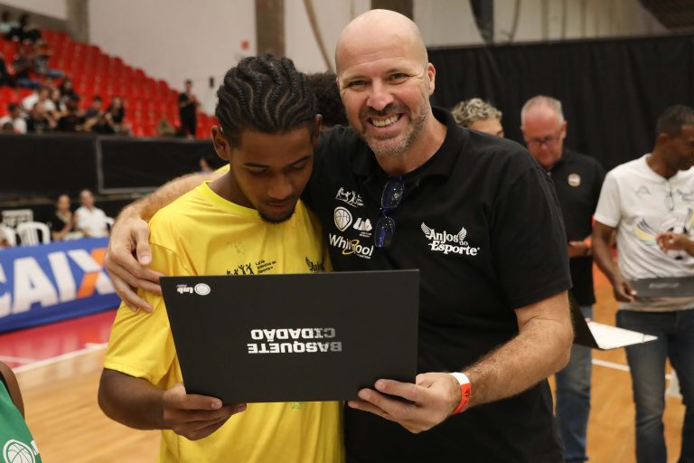 André Brazolin entregando o certificado para um de seus pupilos do Basquete Cidadão. Foto: João Neto/ LNB/ Fotojump(Foto: João Neto/ LNB/ Fotojump) -
