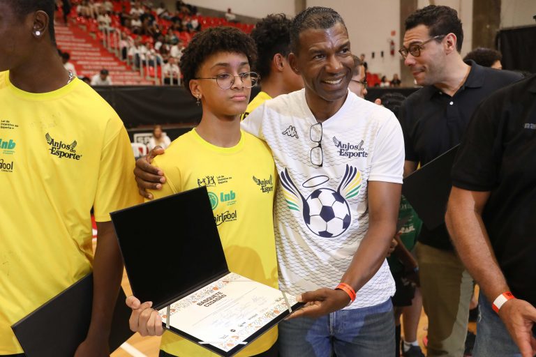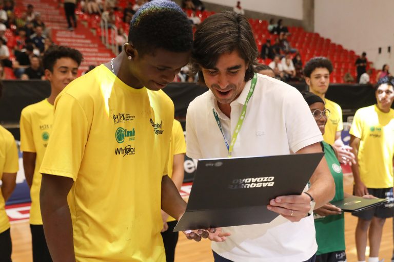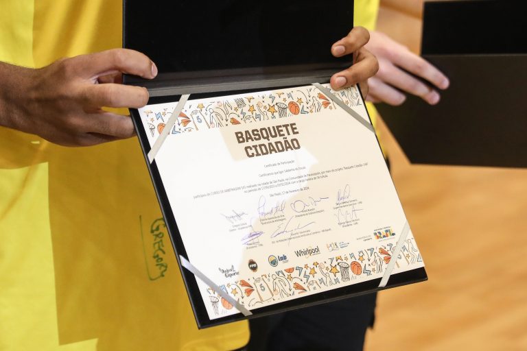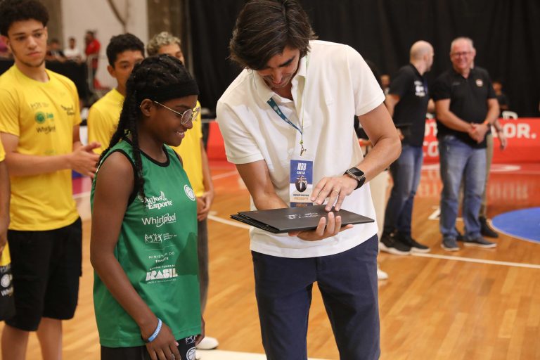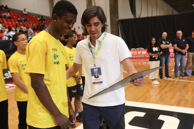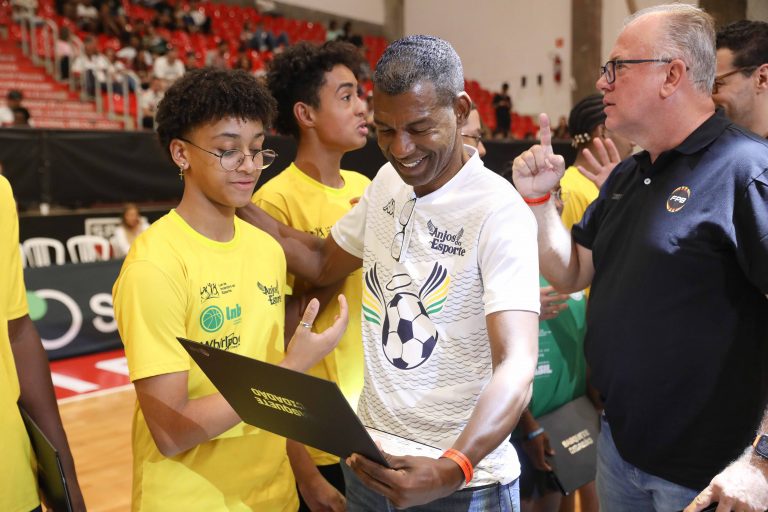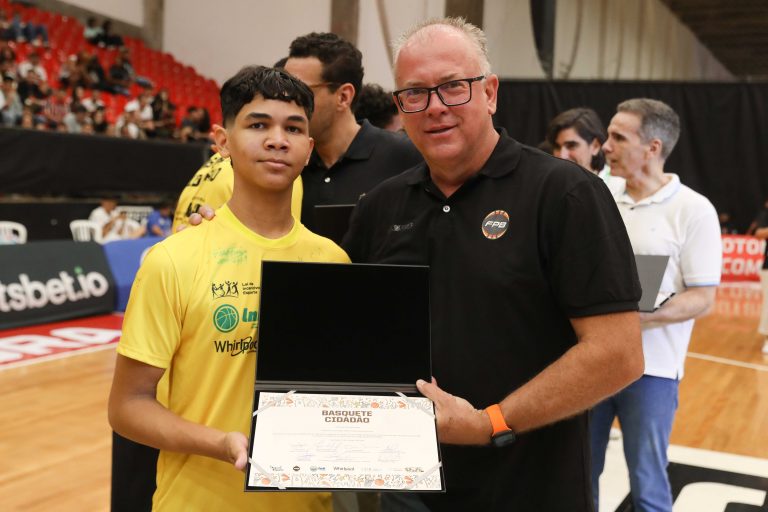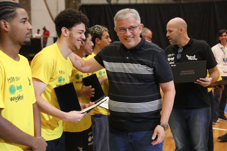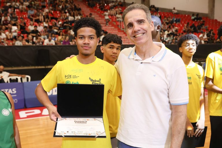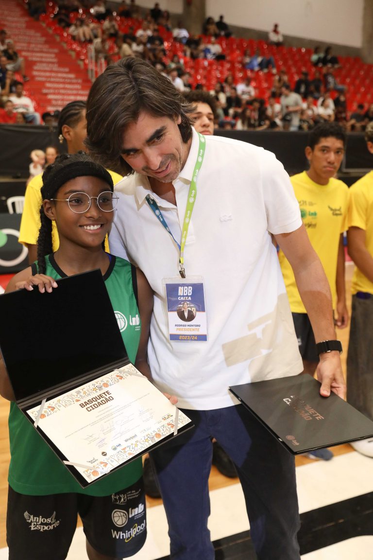 André Brazolin entregando o certificado para um de seus pupilos do Basquete Cidadão. Foto: João Neto/ LNB/ Fotojump(Foto: João Neto/ LNB/ Fotojump) -