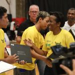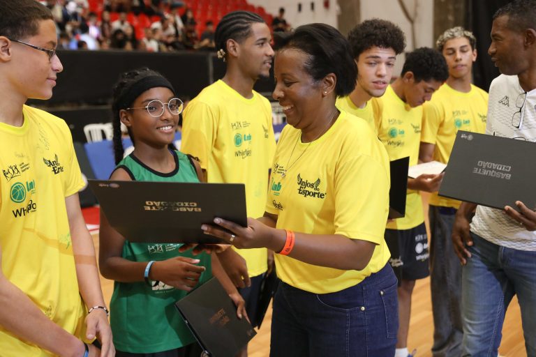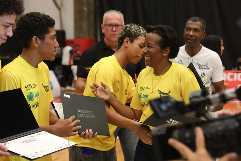 Fátima Aparecida entregando o certificado para os integrantes do Basquete Cidadão. Foto: João Neto/ LNB/ Fotojump(Foto: João Neto/ LNB/ Fotojump) -