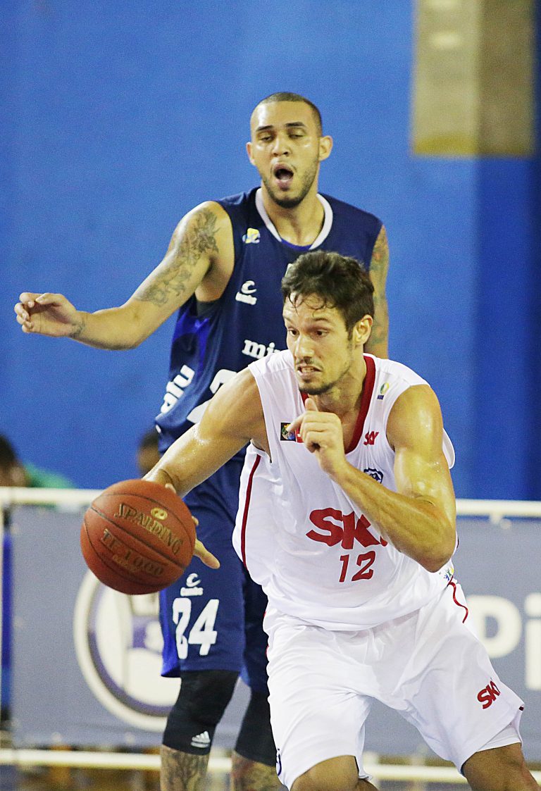 Lucas Dias e Morro, do Pinheiros, e George, do Minas(Carol Coelho/Inovafoto) -