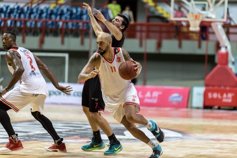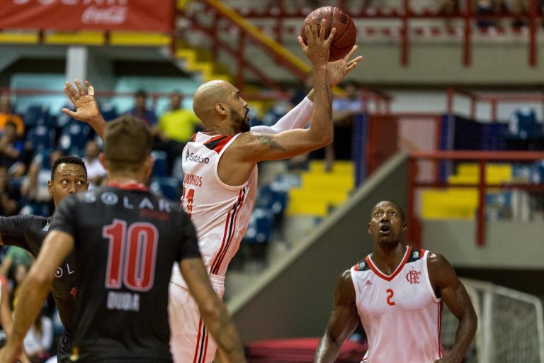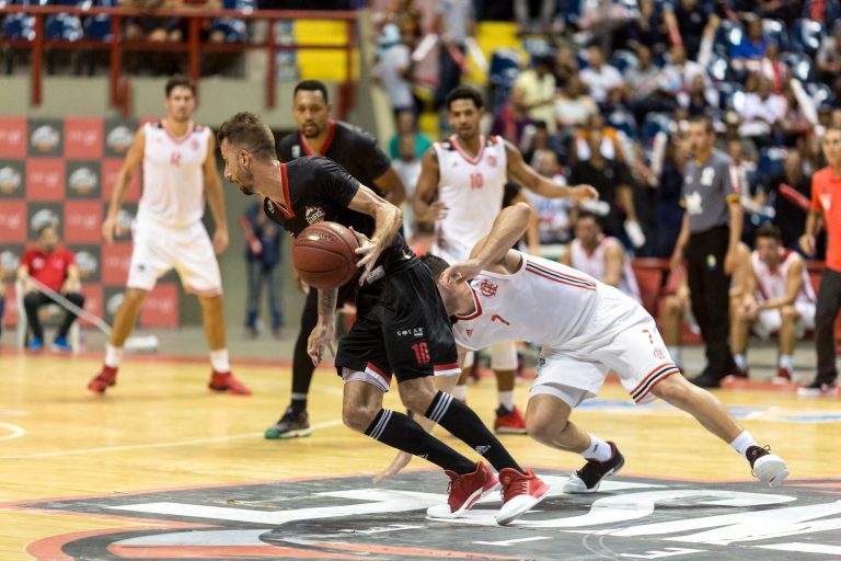 Gruber, do Basquete Cearense, e JP Batista, do Flamengo(Stephan Eilert/Divulgação) -