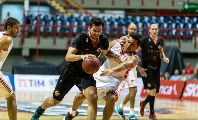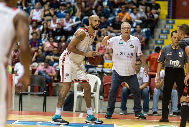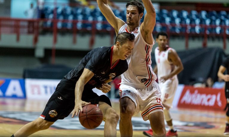 Duda Machado, do Basquete Cearense, e Marcelinho Machado, do Flamengo(Stephan Eilert/Divulgação) -