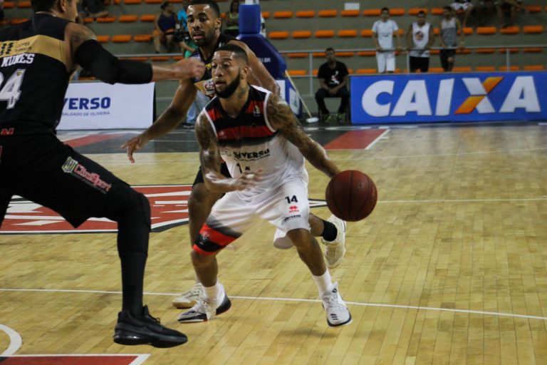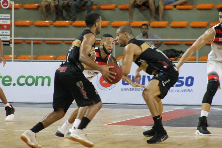 Isaac Thornton, do Campo Mourão, e Edu Mariano, do Vitória (Maurícia da Matta/Divulgação) -