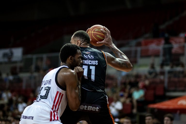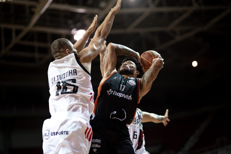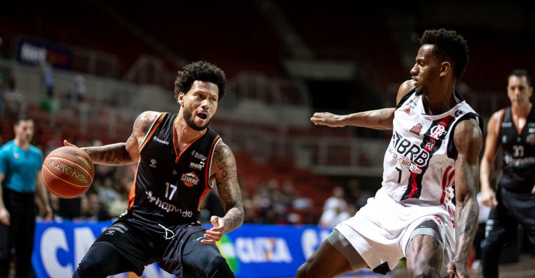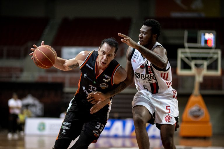 Olivinha, do Flamengo, e Sualisson, do Basquete Cearense(Stephan Eilert/Basquete Cearense)