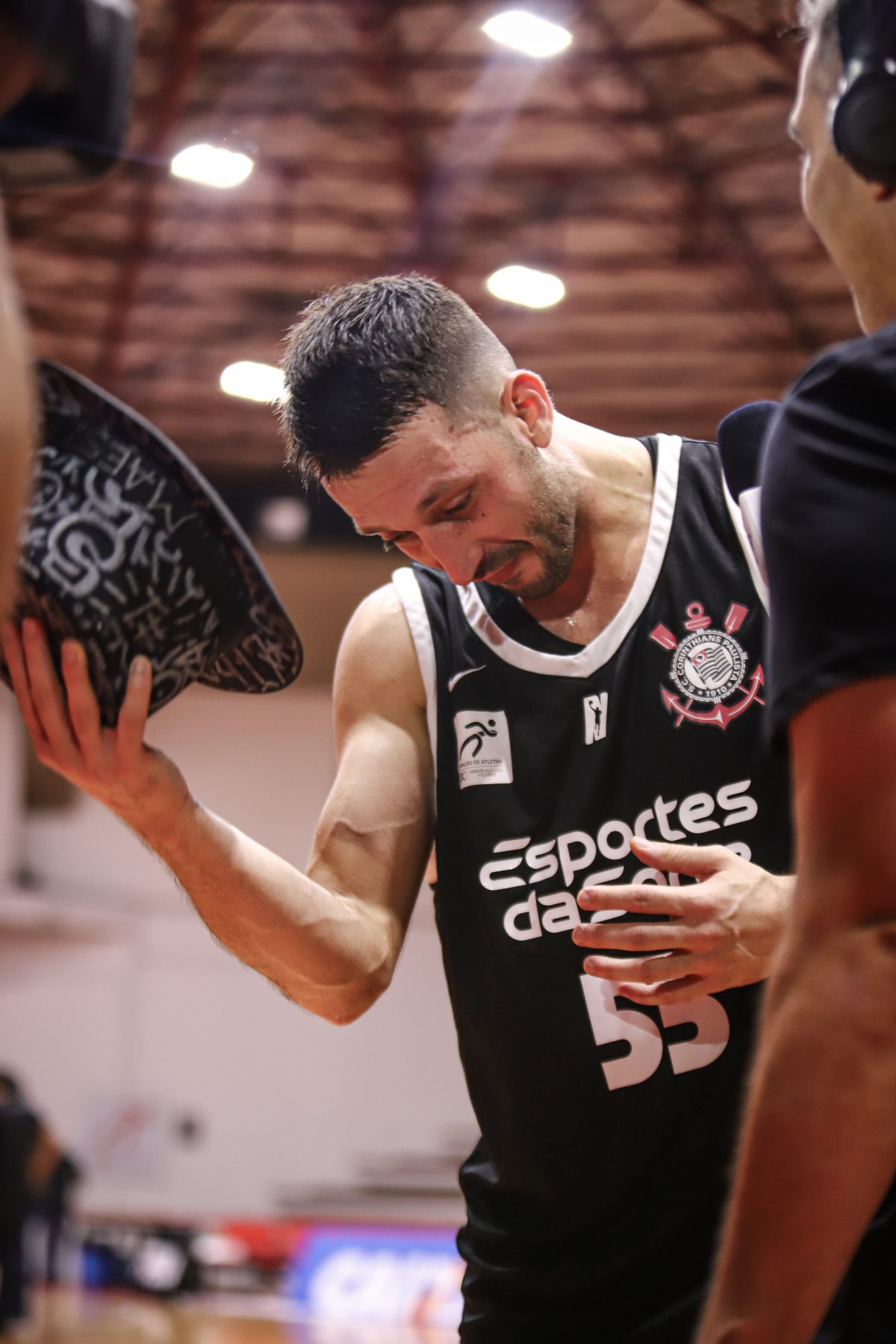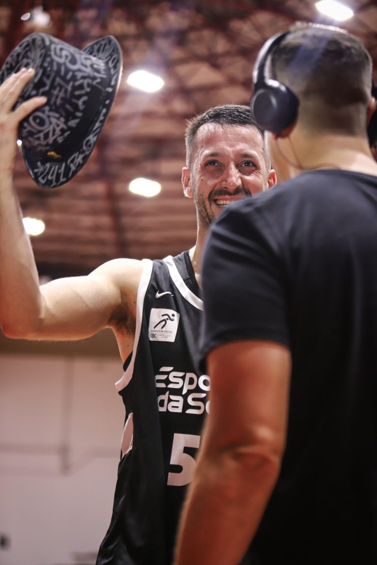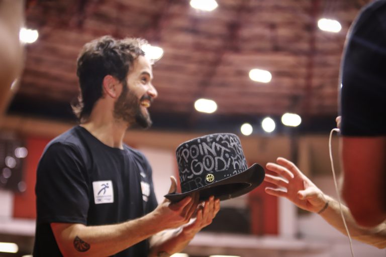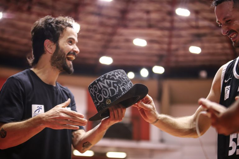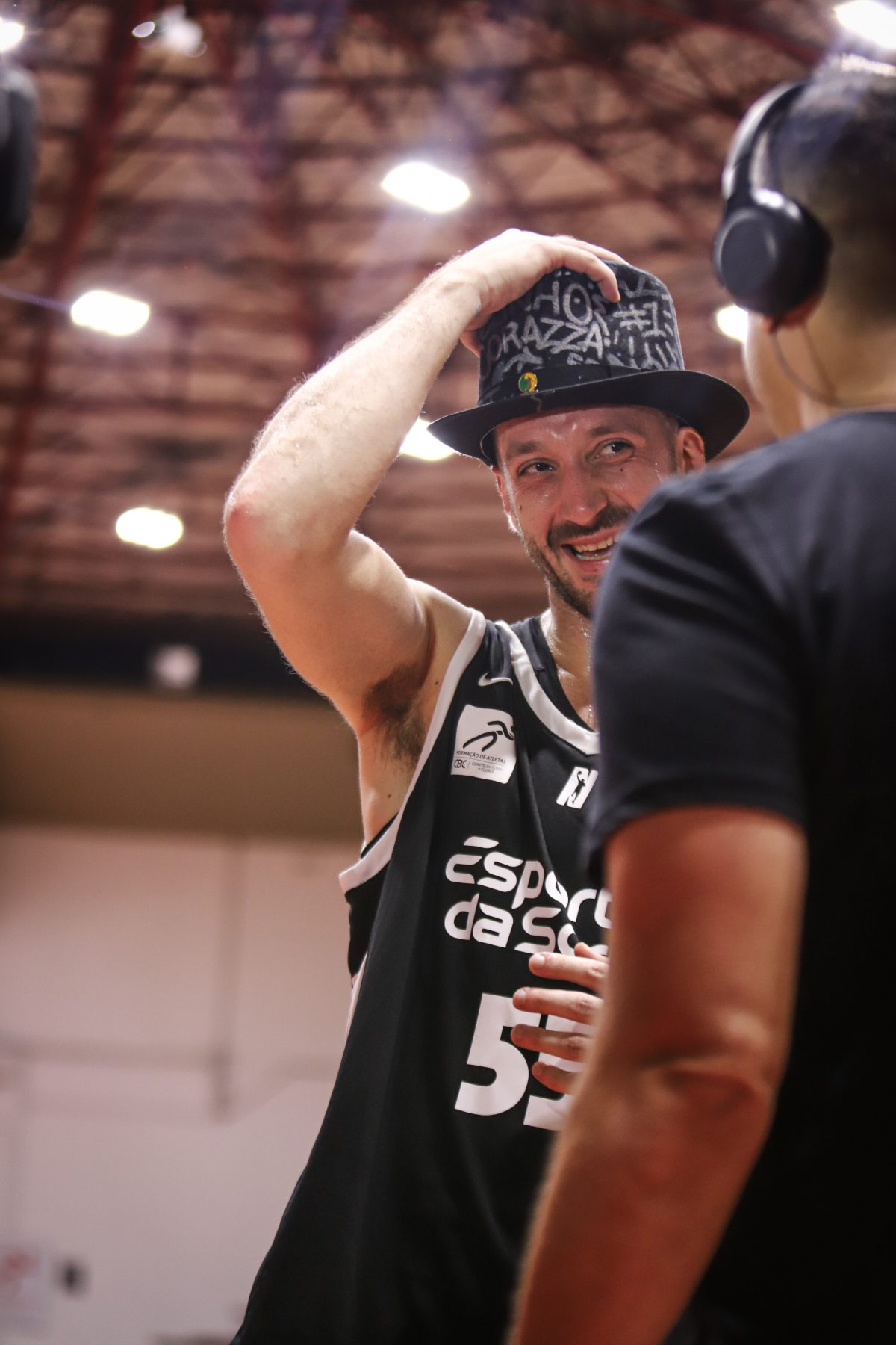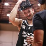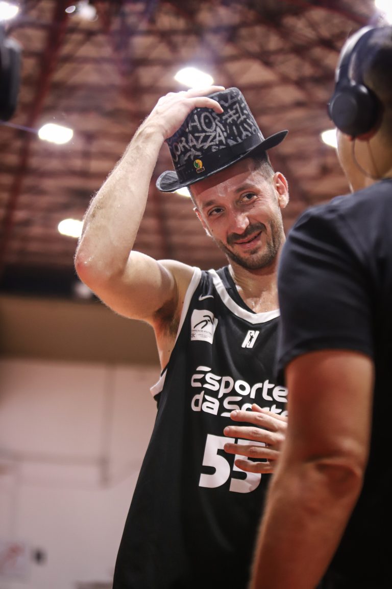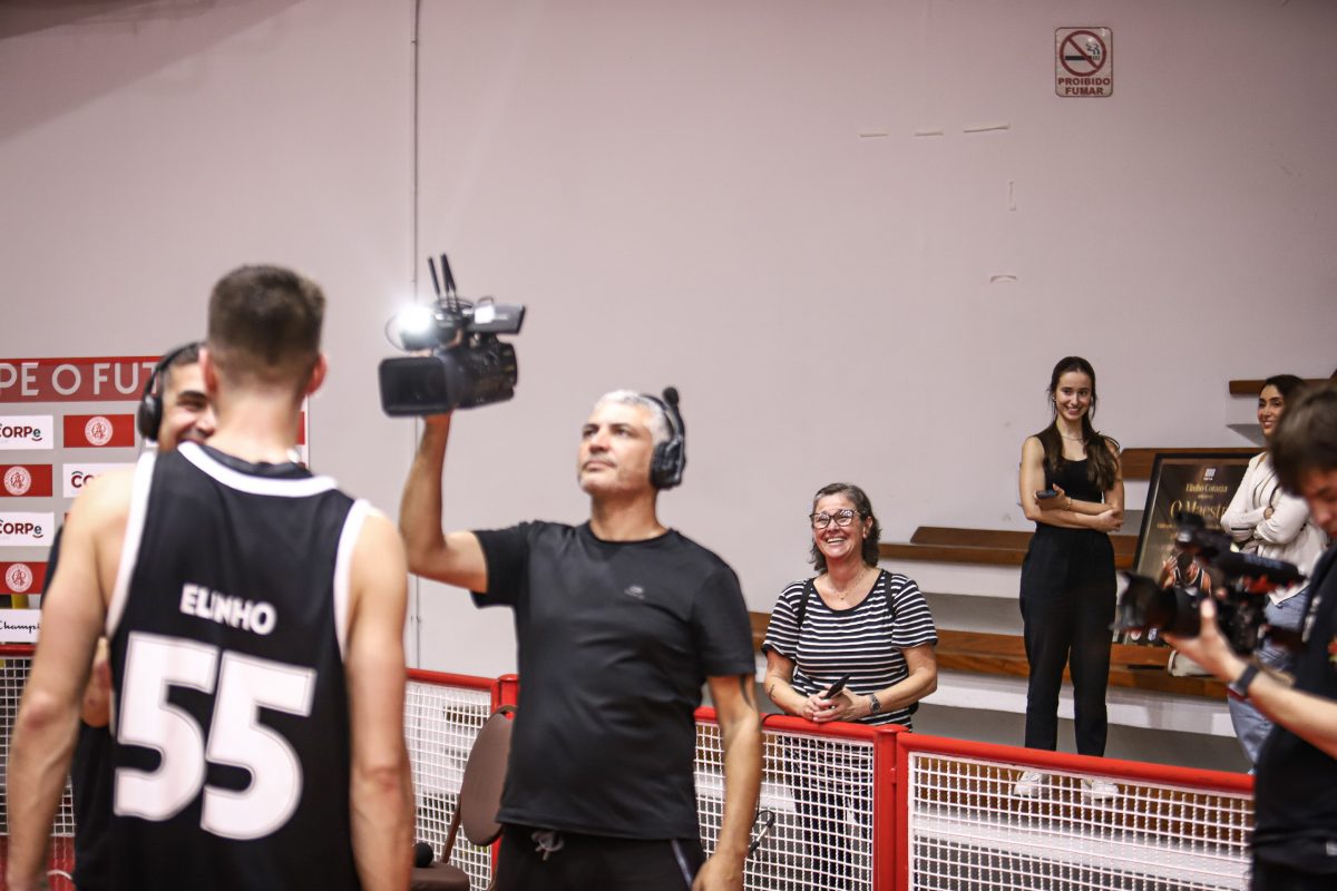 Elinho recebeu uma presente estilizado da LNB para mostrar que Maestro também usa cartola. Foto: Fabrício Miguel // @_fabriciomiguel(Fotos: Fabrício Miguel // @_fabriciomiguel) -