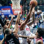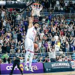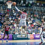Devon Scott sobe para tentar o toco em David Jackson. Foto: Marcos Limonti/SFB(Marcos Limonti) -