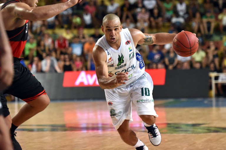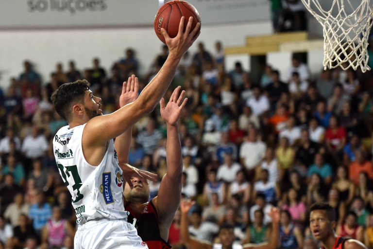 Léo Meindl erra tentativa para três pontos. (0/1 - 0.0% - Equipe: 0/2 - 0.0%)