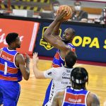 Gabriel Jaú acerta arremesso de dois pontos.