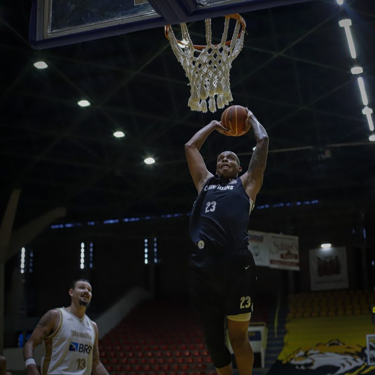 Marcelão acerta arremesso de dois pontos.
