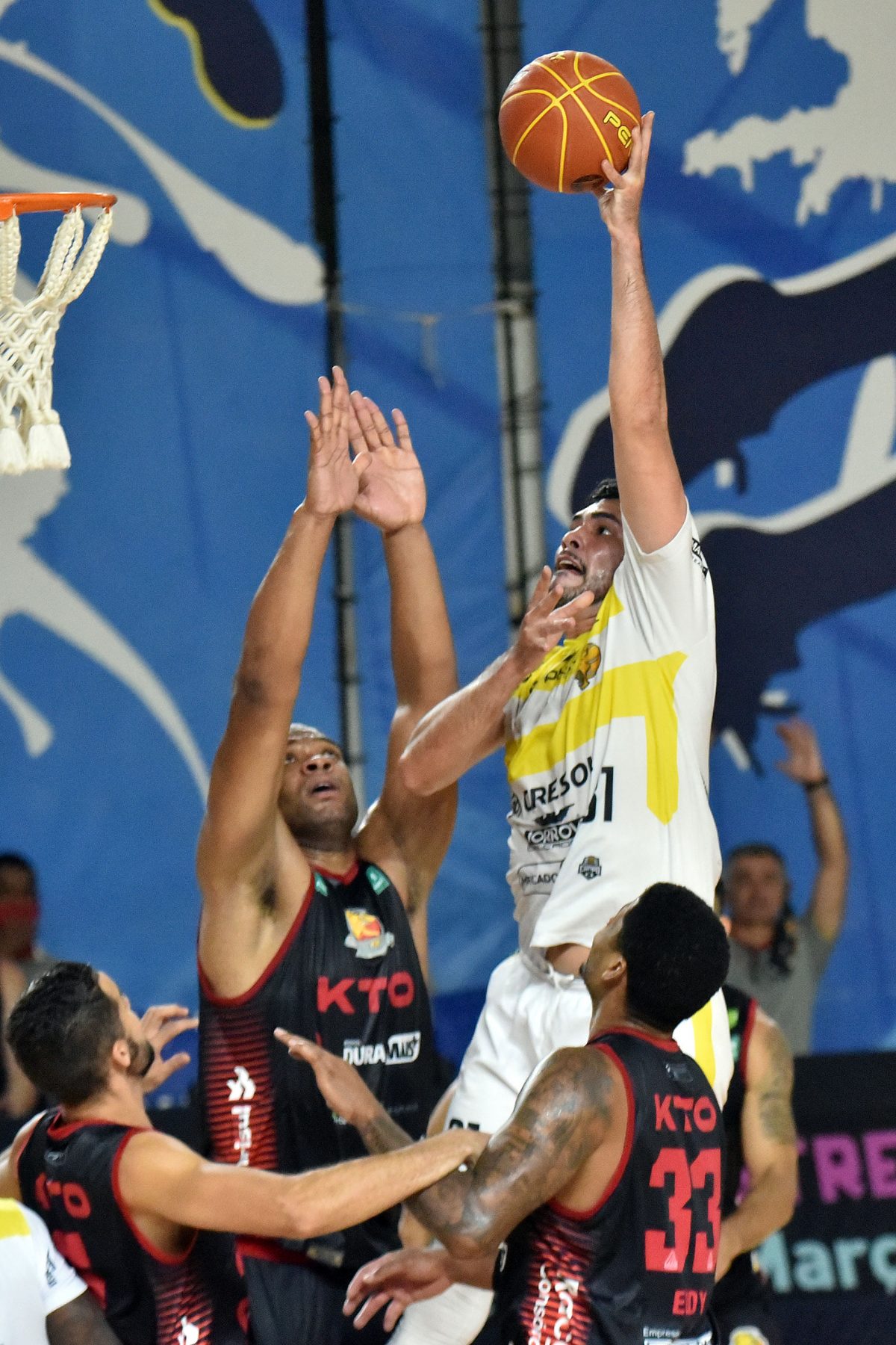 Pedro pega rebote ofensivo.