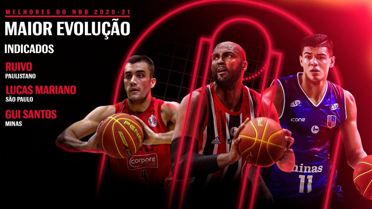 Gui Santos, do Minas, Lucas Mariano, do São Paulo, e Felipe Ruivo, do Paulistano, são os três indicados ao prêmio de Maior Evolução do NBB 2020/2021