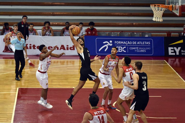 Arlindo pega rebote ofensivo.