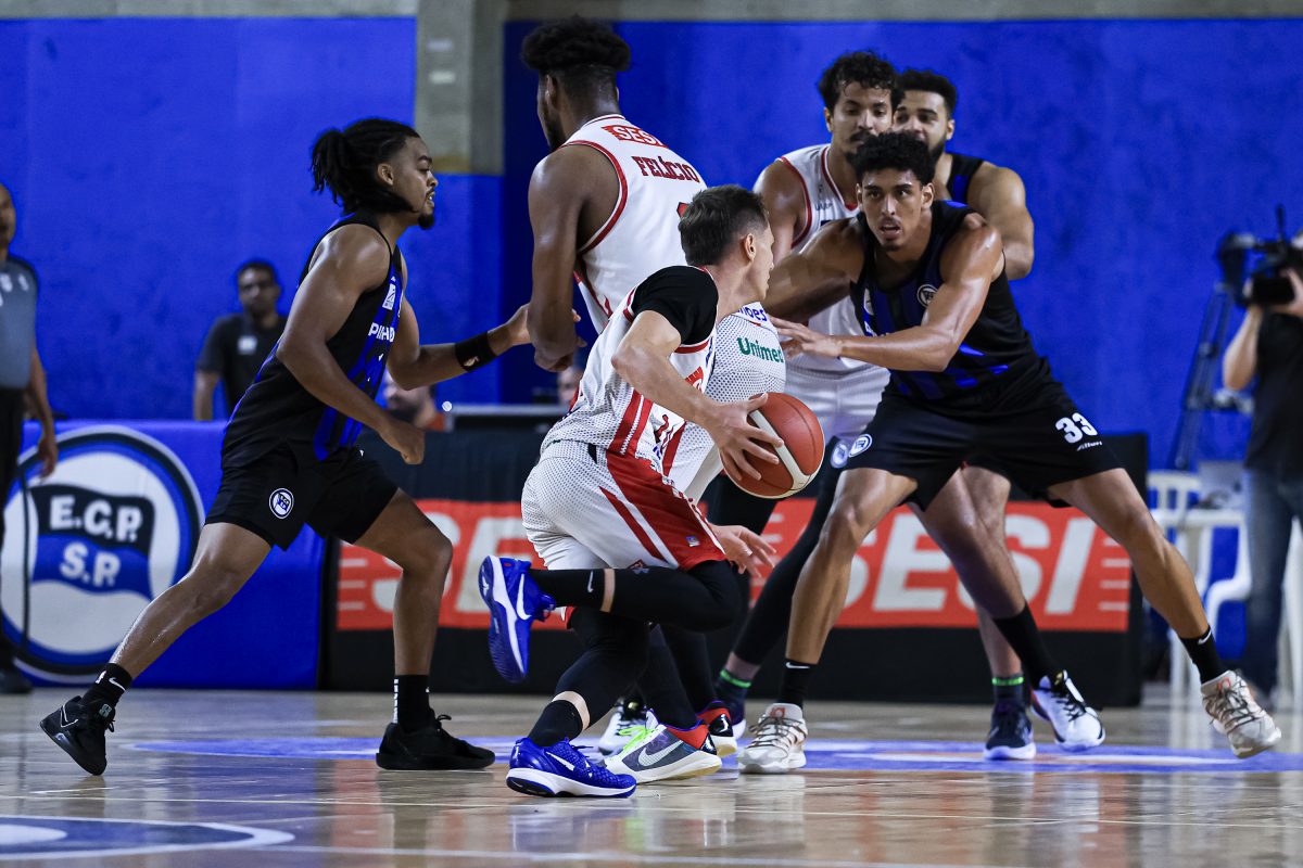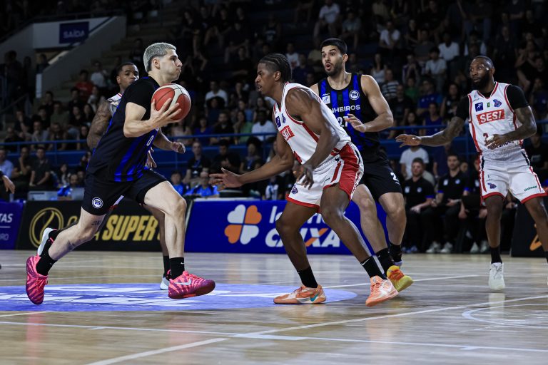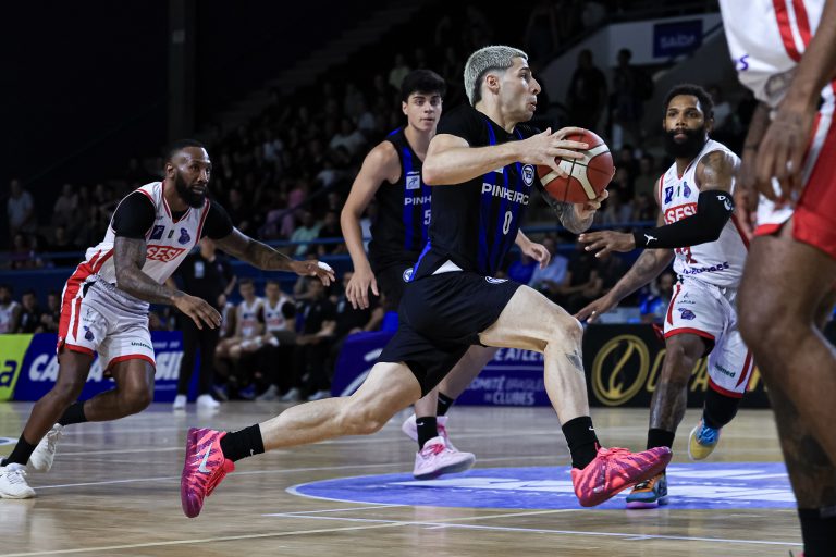 O Sesi Franca voltou do intervalo impondo um nível ainda mais alto de intensidade defensiva, subindo linhas, encurtando espaços e tirando o ritmo do adversário. A pressão surtiu efeito imediato, com o time francano assumindo o controle do jogo, abrindo nove pontos de frente. O cenário só mudou após um pedido de tempo de Gustavinho De Conti, que cobrou atitude. A resposta veio na quadra. O Pinheiros ajustou a circulação de bola, voltou a pontuar de forma mais coletiva e, posse a posse, foi reduzindo o prejuízo até buscar a igualdade, indo para os 10 minutos derradeiros sem vantagem para ninguém: 60 a 60.