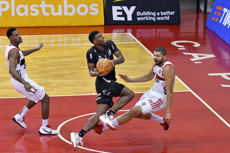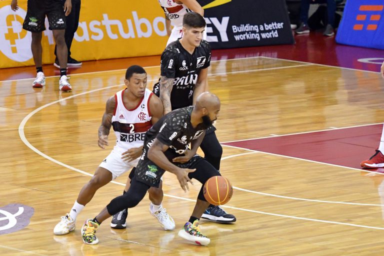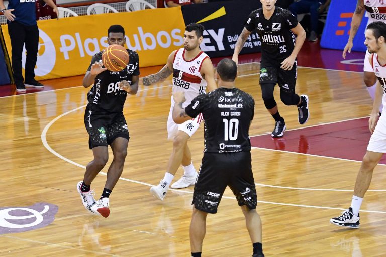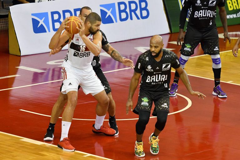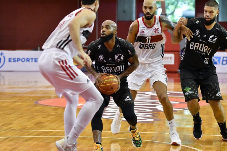 Yago e Chuzito, do Flamengo, e Tyrone, do Bauru -