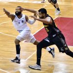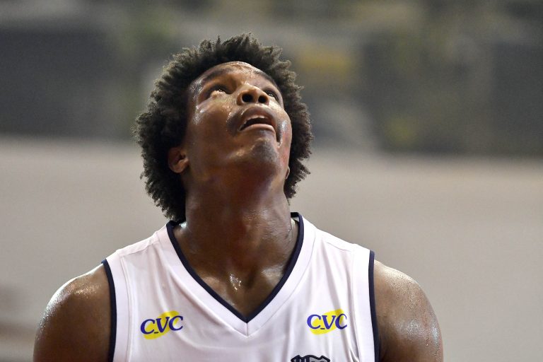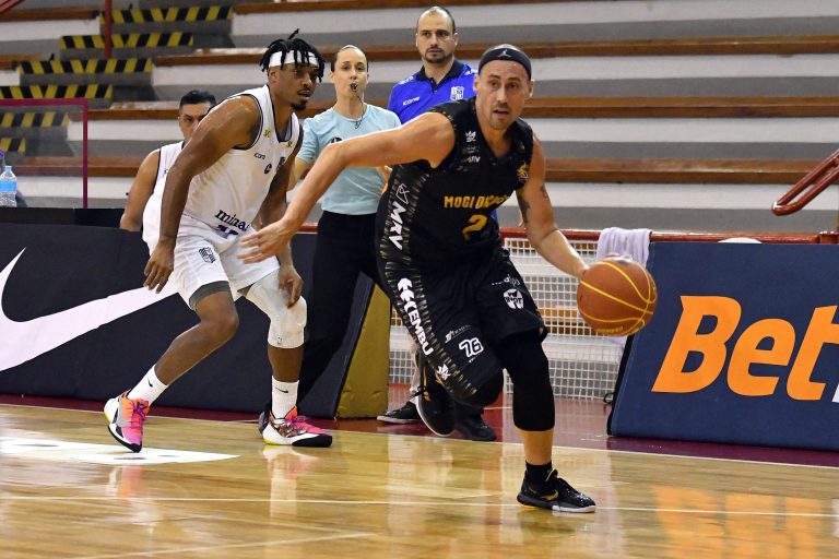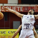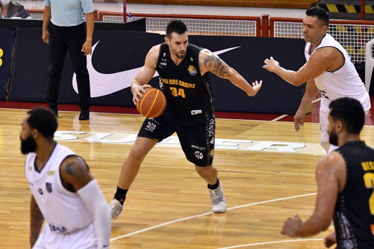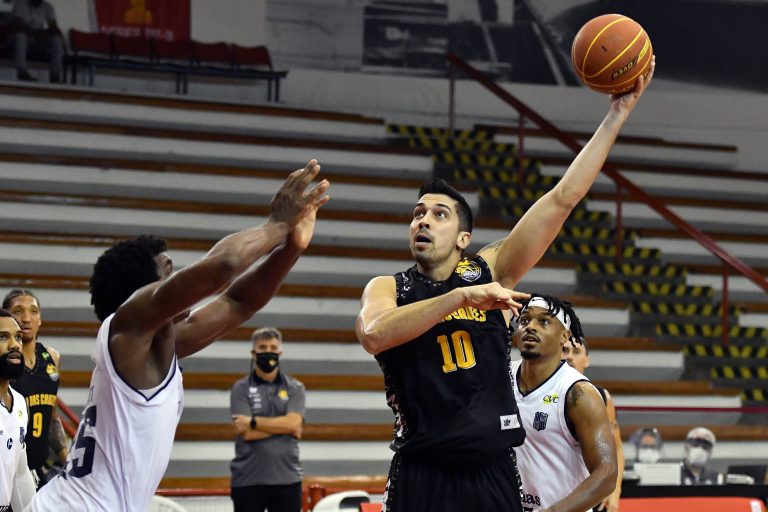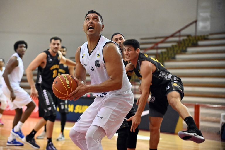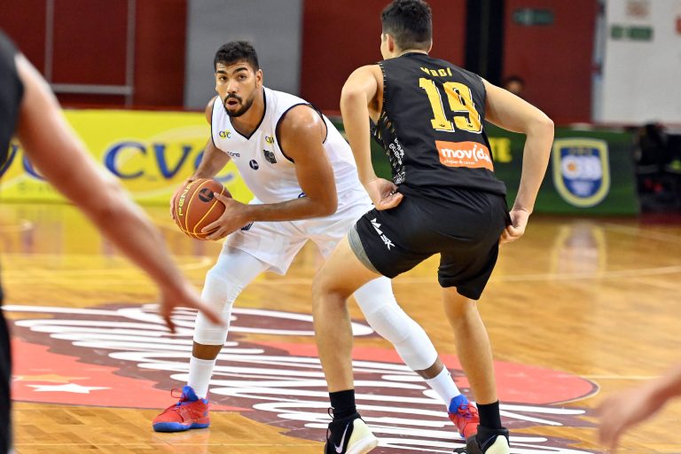 Mogi pega rebote ofensivo.