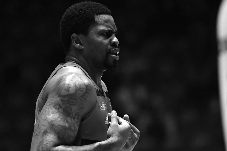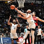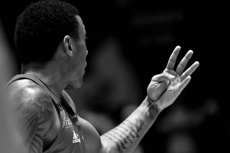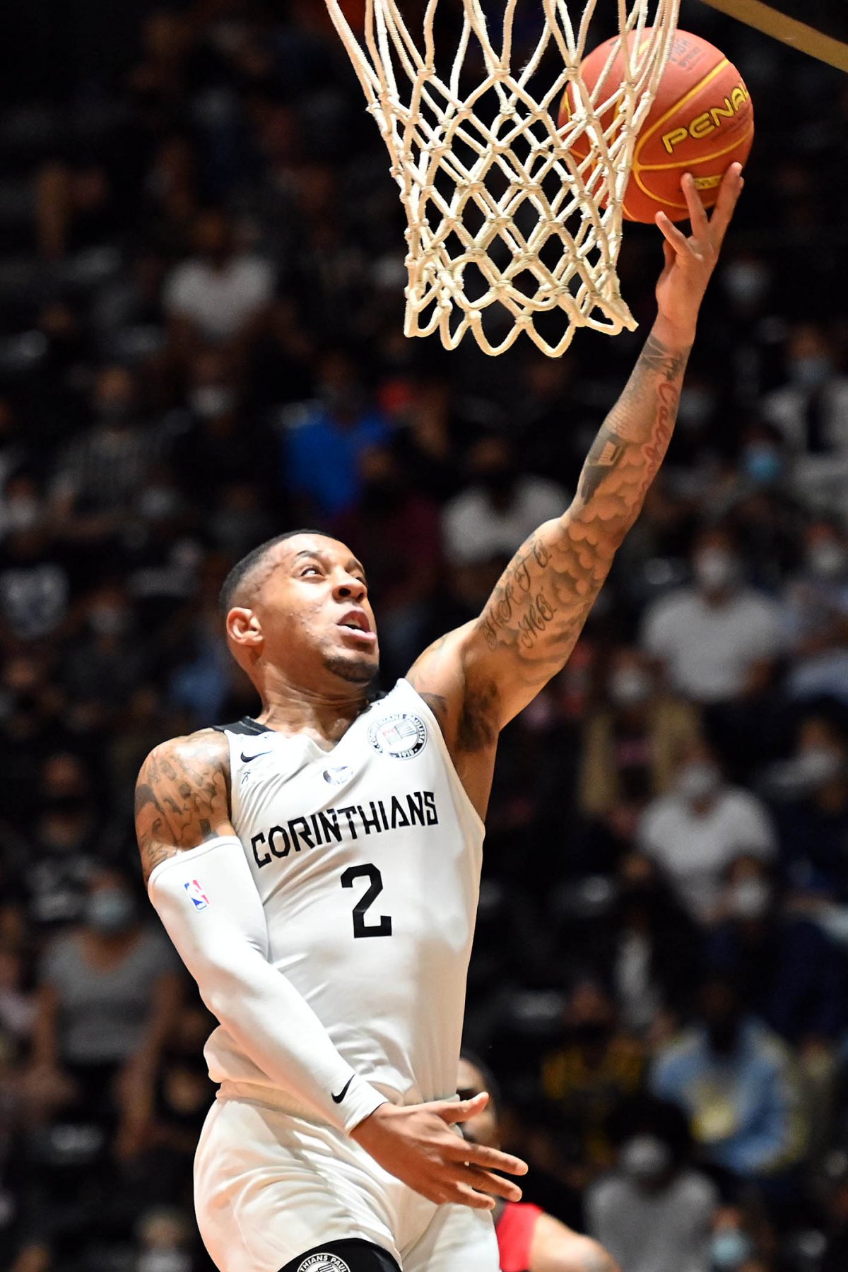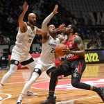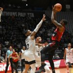 Batista acerta arremesso de dois pontos.