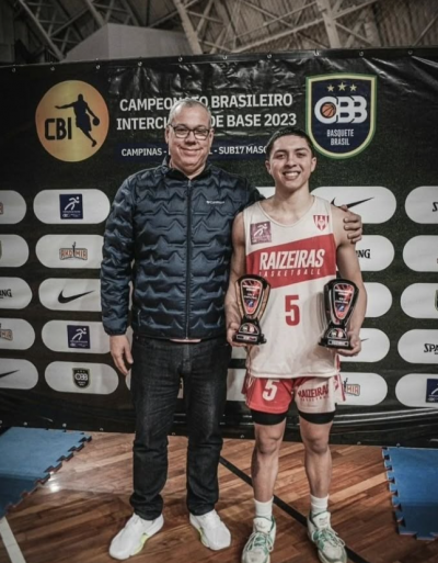 Jackson Junior com o seu prêmio de MVP do CBI sub-17 de 2023. Foto: Divulgação/CBB