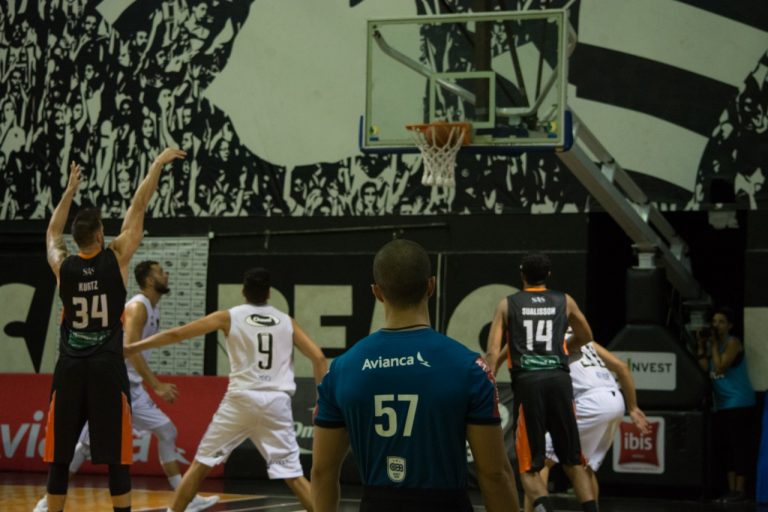 Joga nele: Ansaloni foi o nome do Botafogo no primeiro tempo. O pivô botafoguense foi muito bem, contribuiu com 14 de 40 pontos anotados pelo clube da estrela solitária nas duas primeiras parciais (40 a 31).