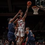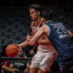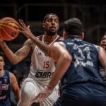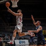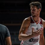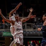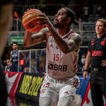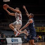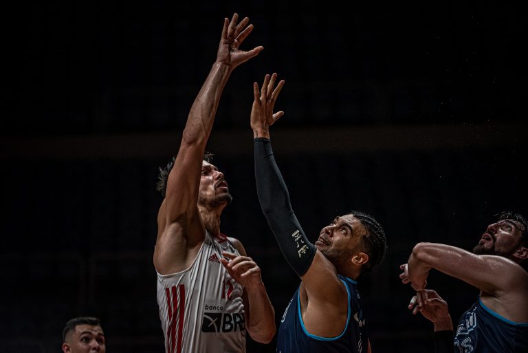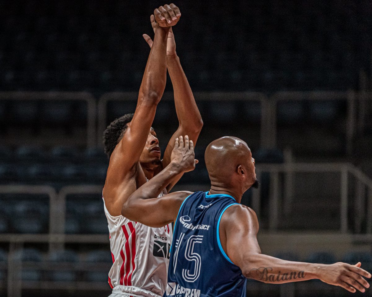Mineiro acerta arremesso de dois pontos.
