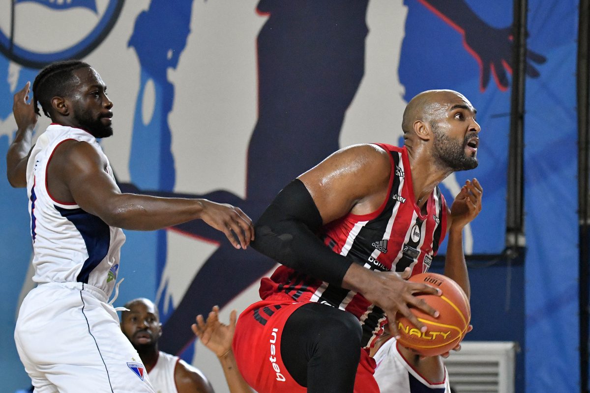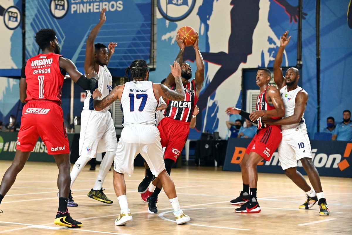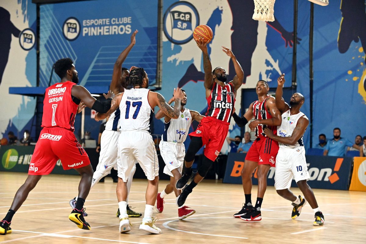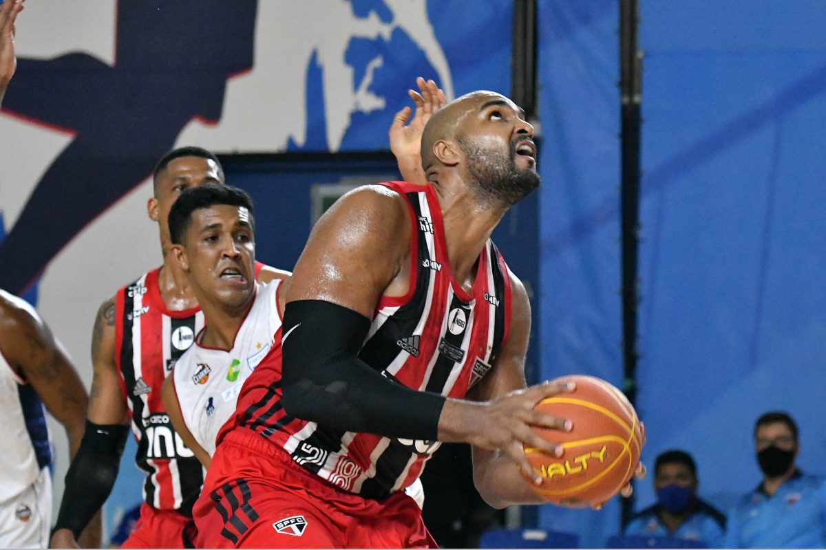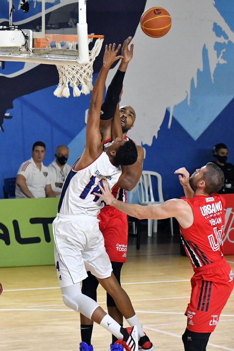 São Paulo pega rebote ofensivo.