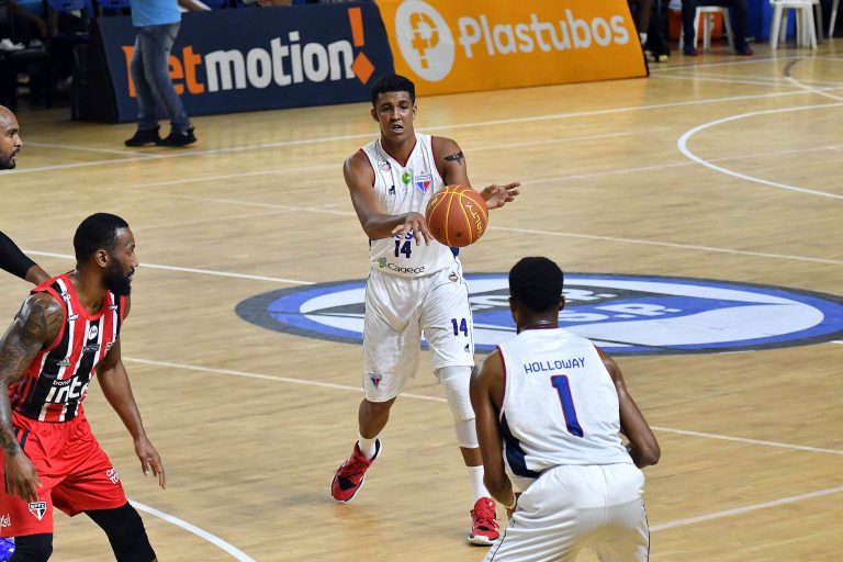 Fortaleza B. C. / CFO | Nr. | Jogador | JO | Min | Pts | RD+RO RT | AS | 3P% | 2P% | LL% | BR | TO | FC | FR | ER | EN | +/- | EF |