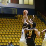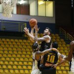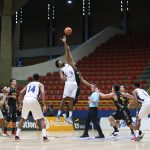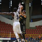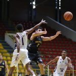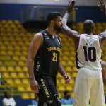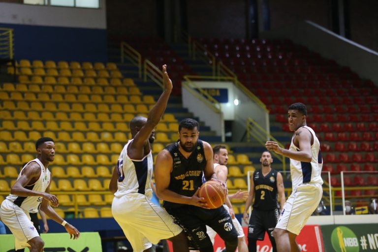 Mogi pega rebote ofensivo.