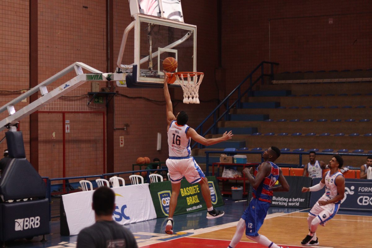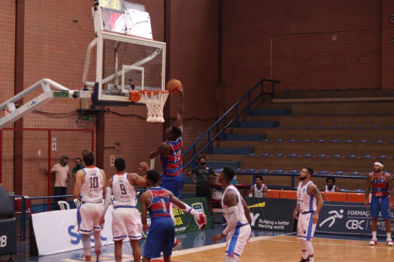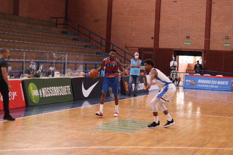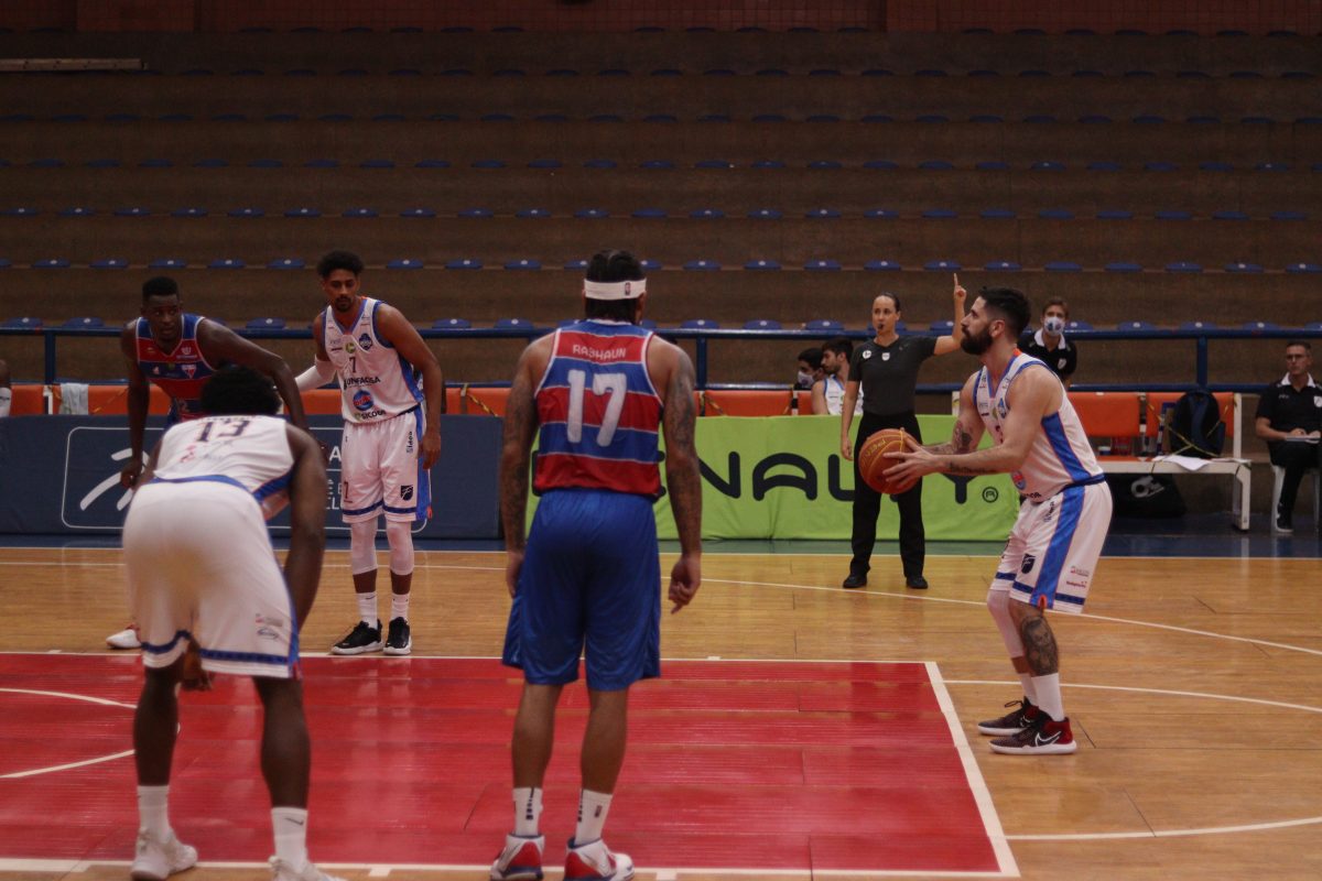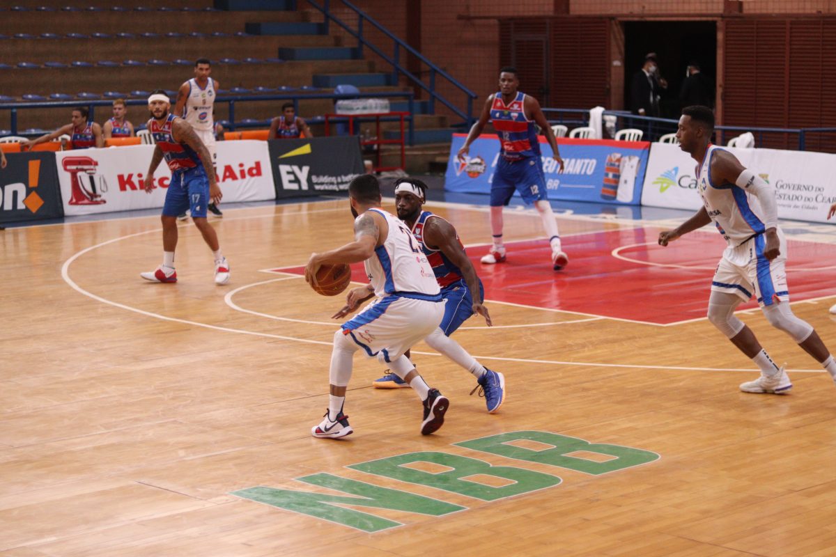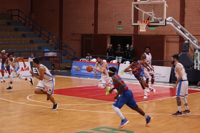 Fortaleza Basquete Cearense pega rebote ofensivo.