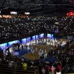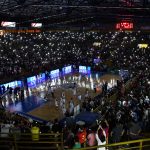 Ginásio Pedrocão com as luzes apagada antes do início do jogo -