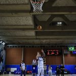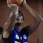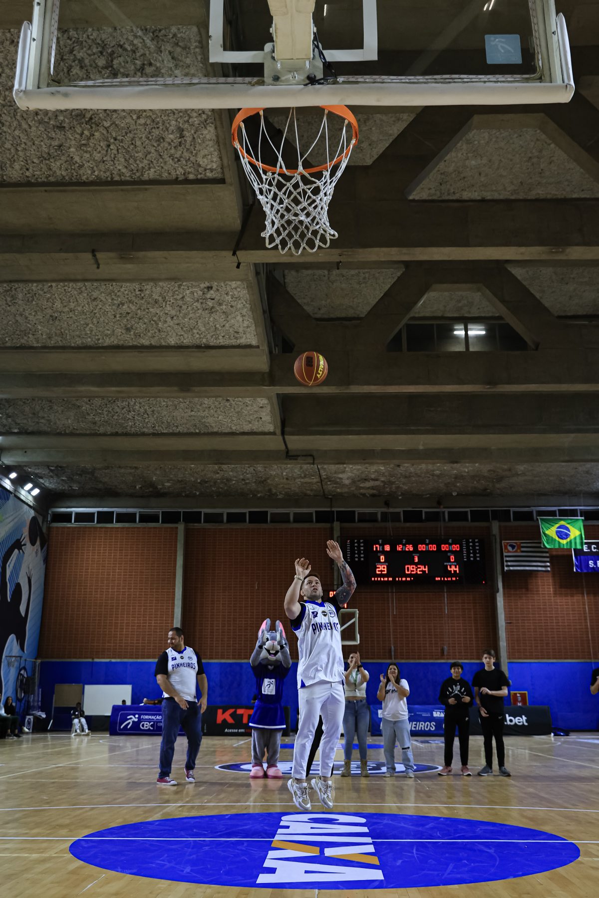 Mineiro acerta arremesso de dois pontos.