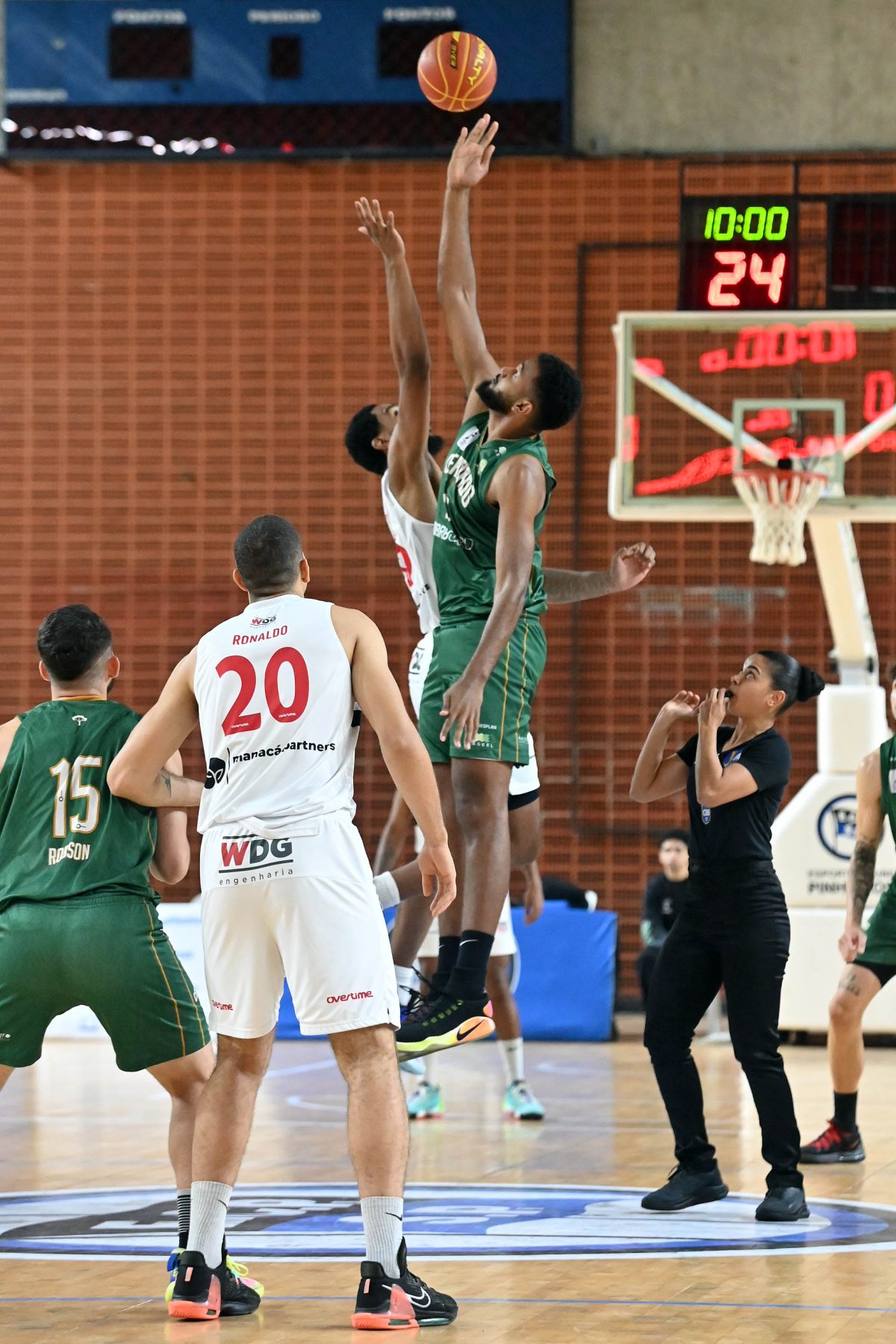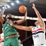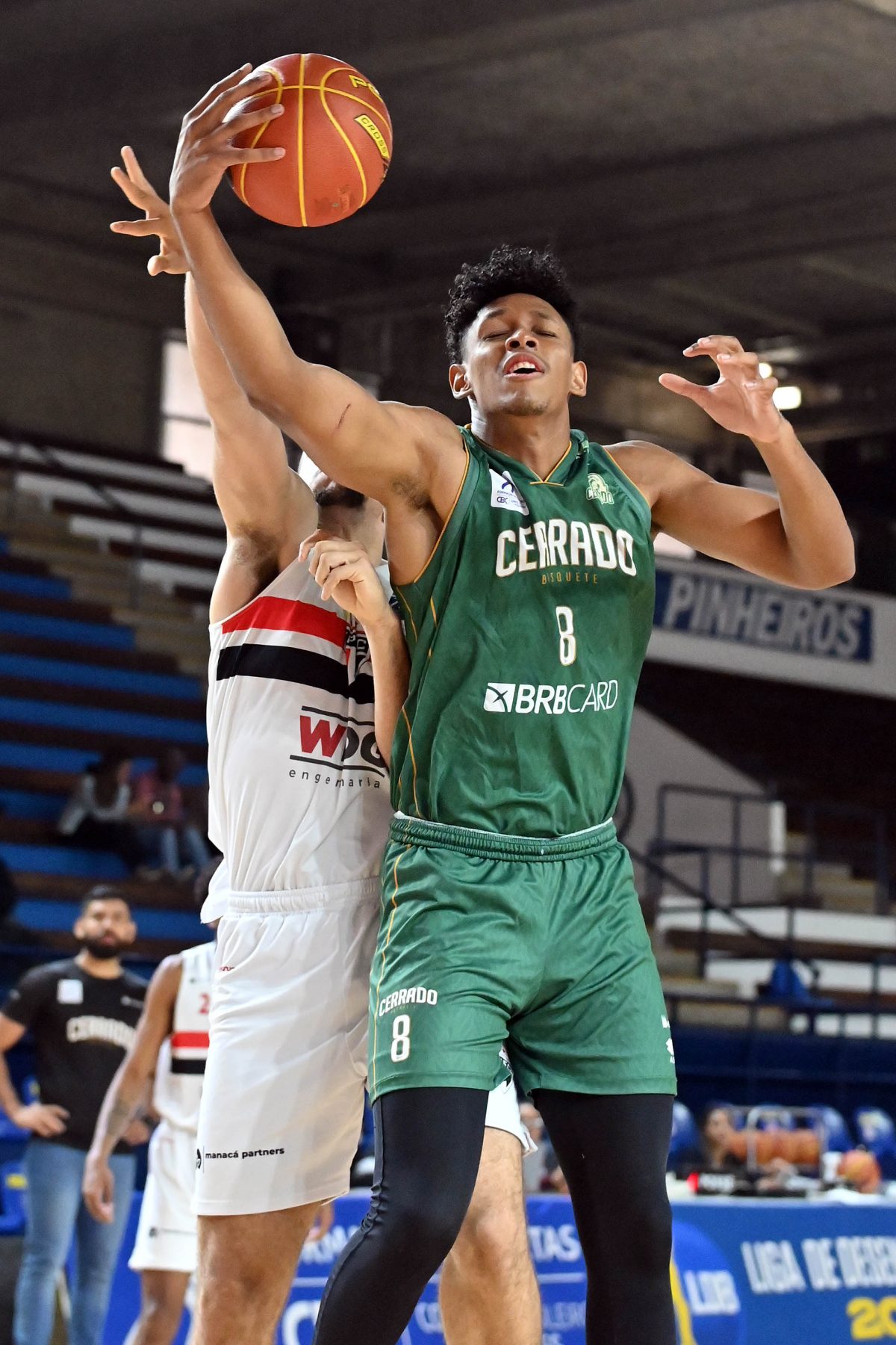 João Camargo pega rebote ofensivo.