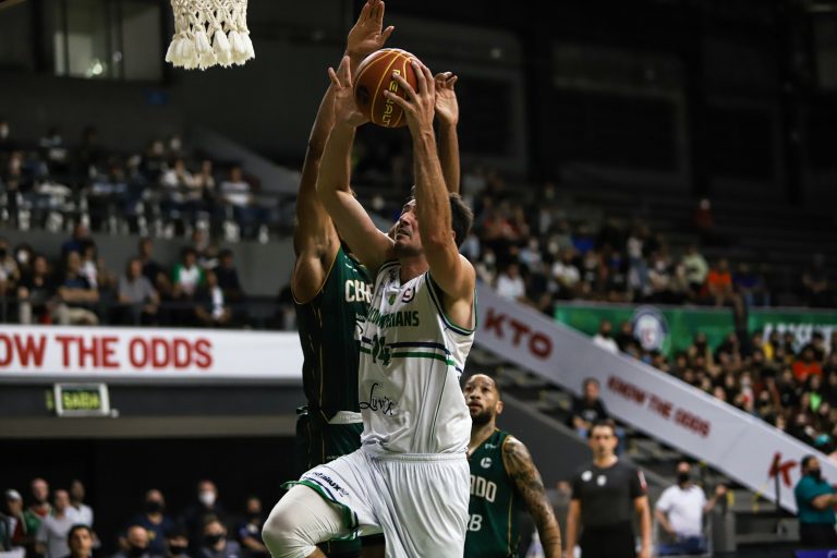 Serjão pega rebote ofensivo.