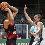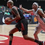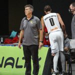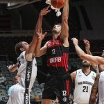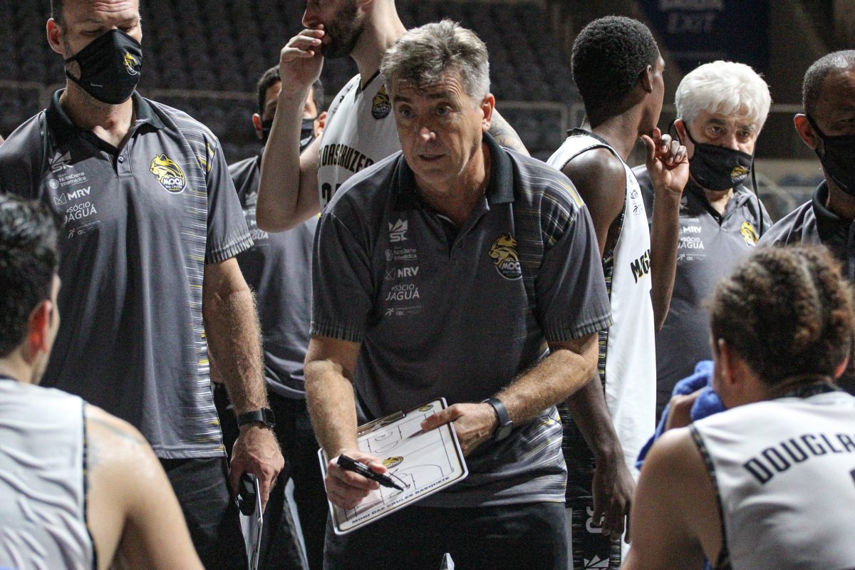 Mineiro acerta arremesso de dois pontos.