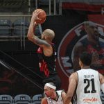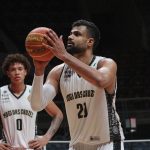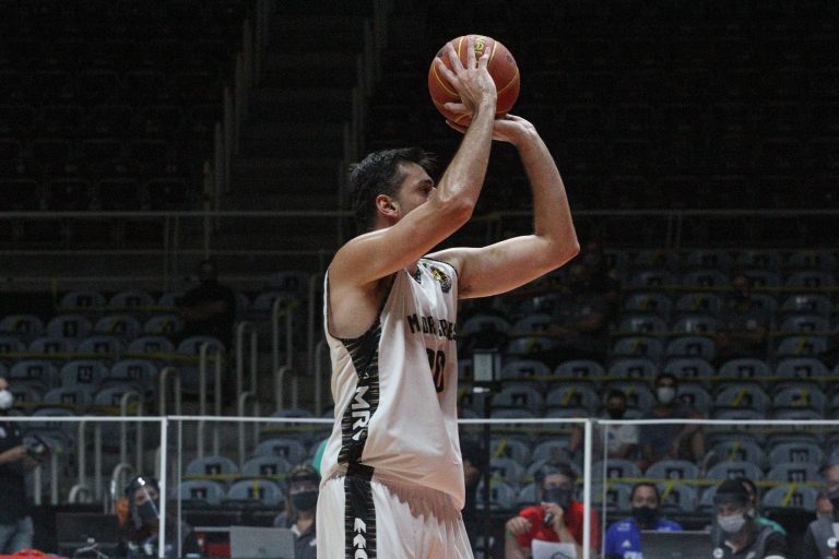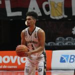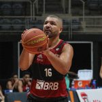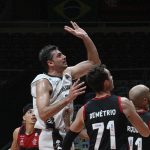 Douglas Santos acerta arremesso de dois pontos.