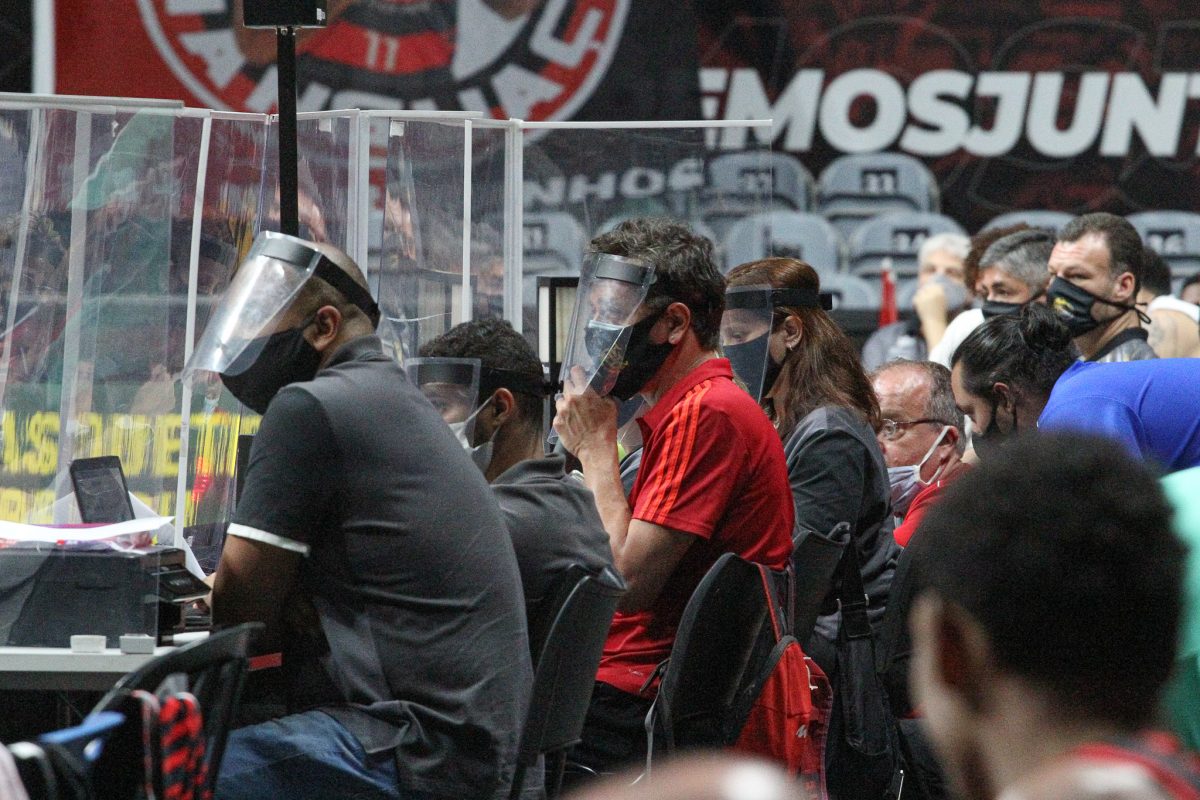 Flamengo pega rebote defensivo.