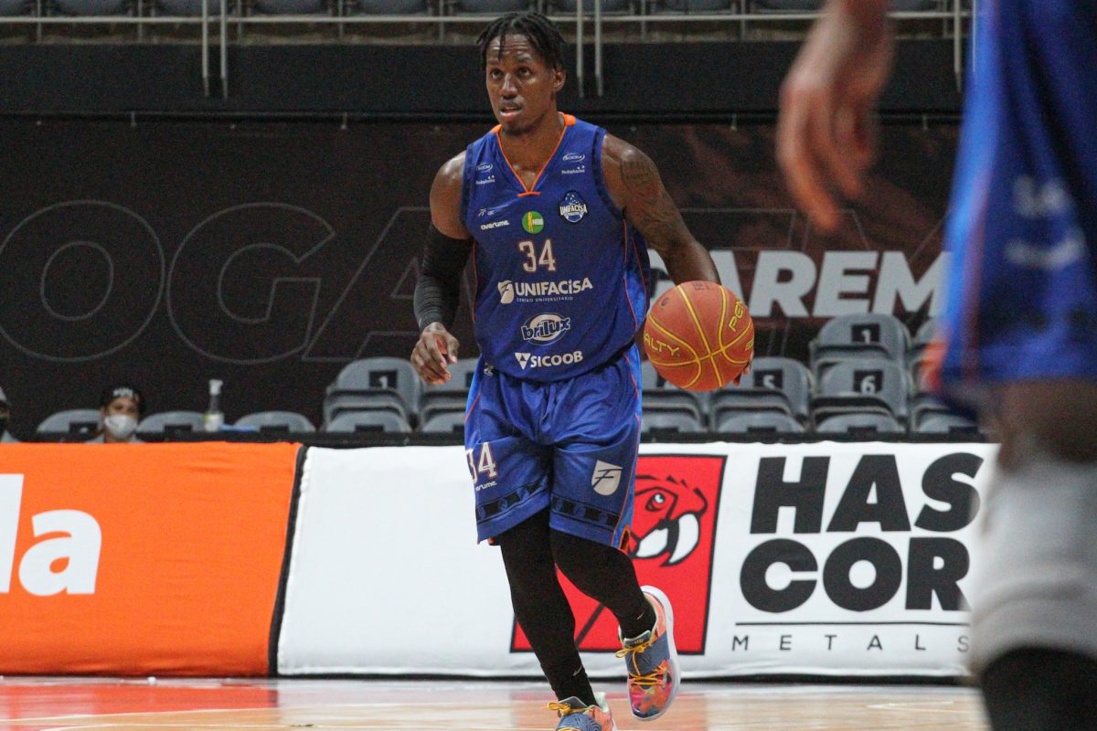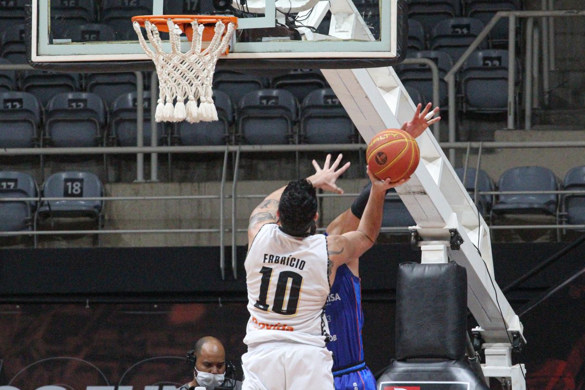 Betinho pega rebote ofensivo.