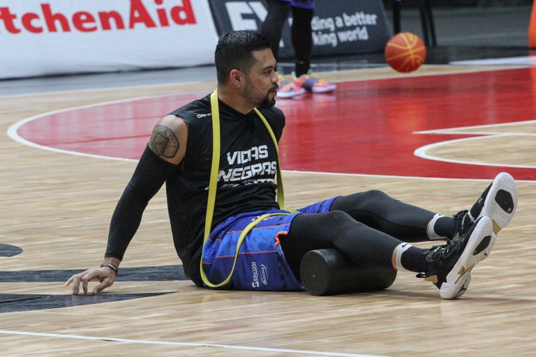 Rafa pega rebote defensivo.