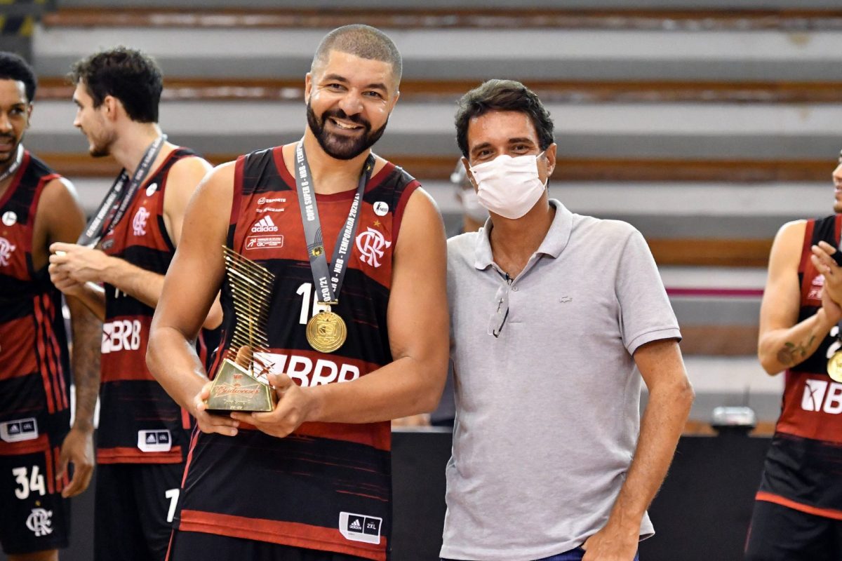 Rafael Hettsheimeir com o troféu de MVP pelo desempenho na edição de 2020. Foto: Bruno Lorenzo/LNB