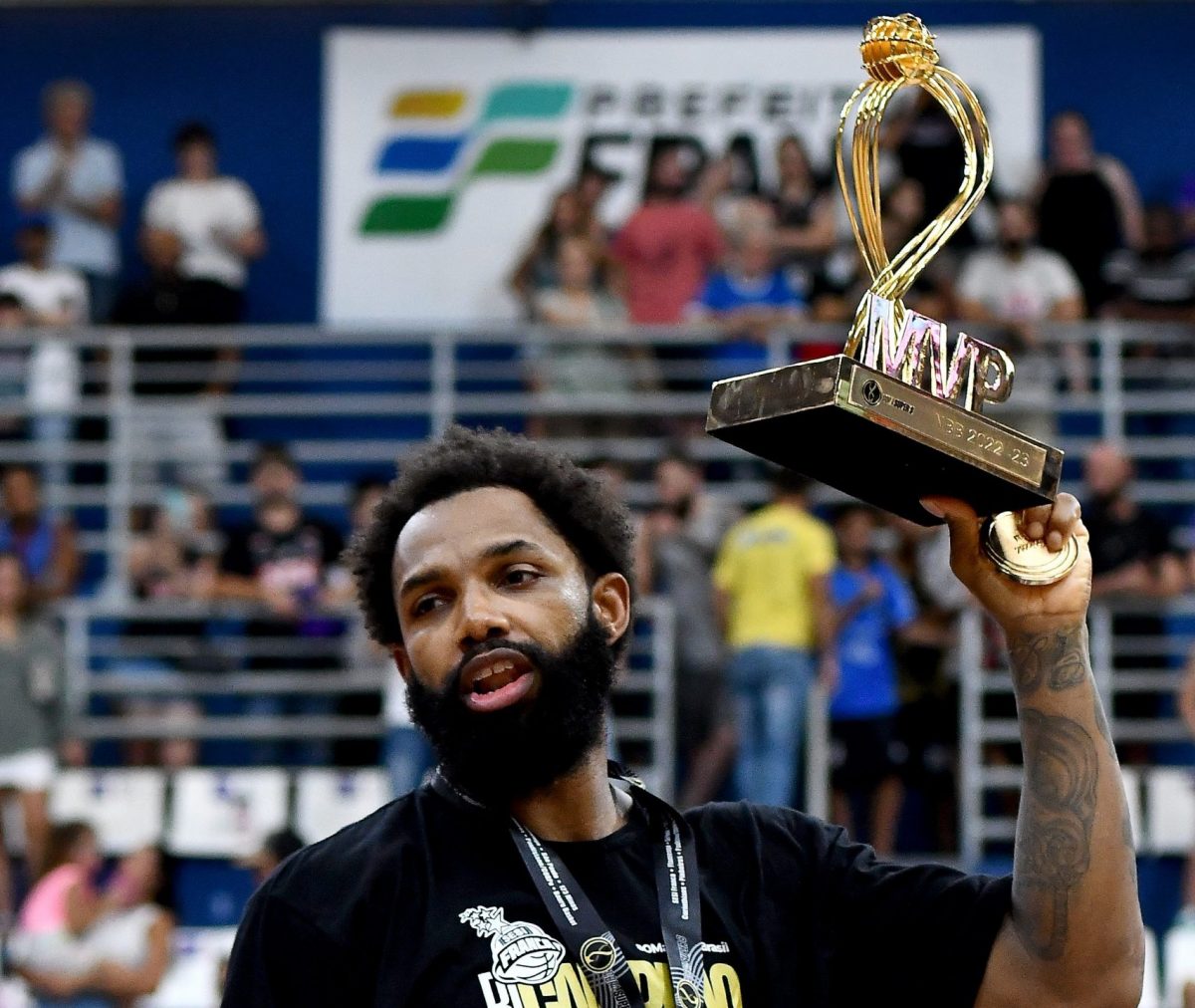 Alexey Borges com o troféu de MVP da Copa Super 8 de 2025. Foto: Yuri Reuters/LNB