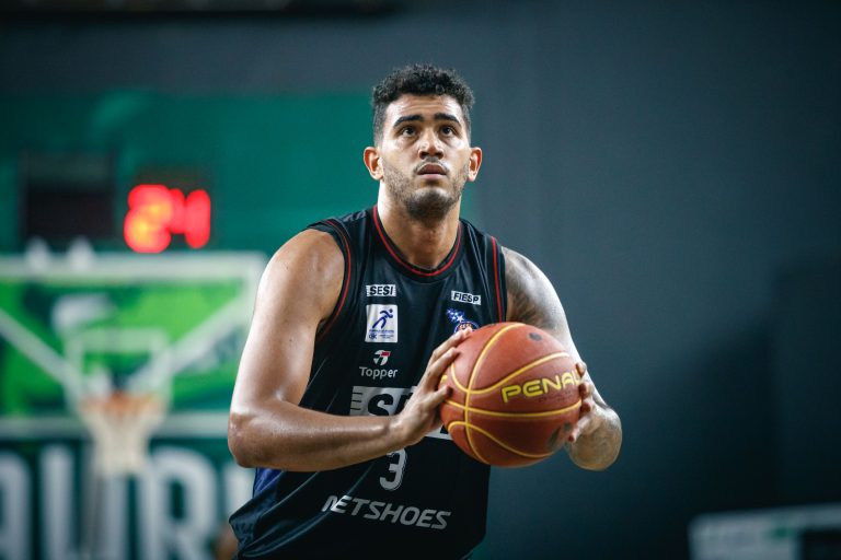 Georginho acerta arremesso de dois pontos.