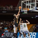 Augusto pega rebote defensivo.