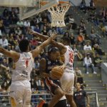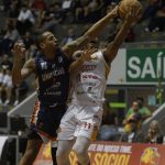 Jamison Jr pega rebote ofensivo.