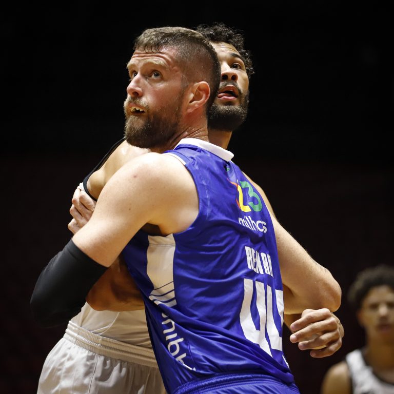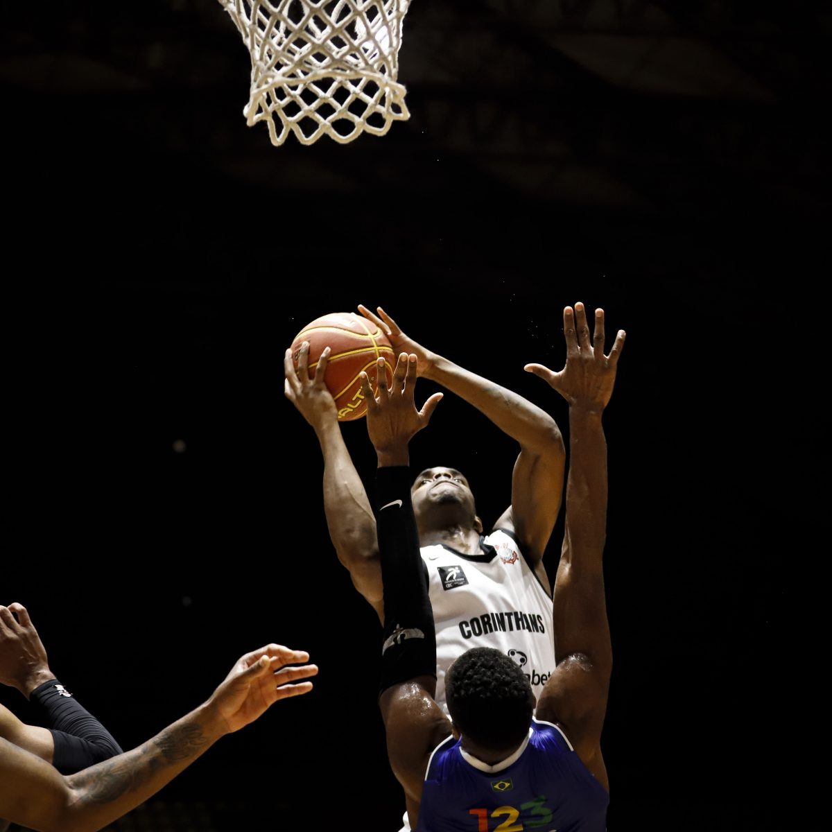 Pedro Nunes pega rebote ofensivo.