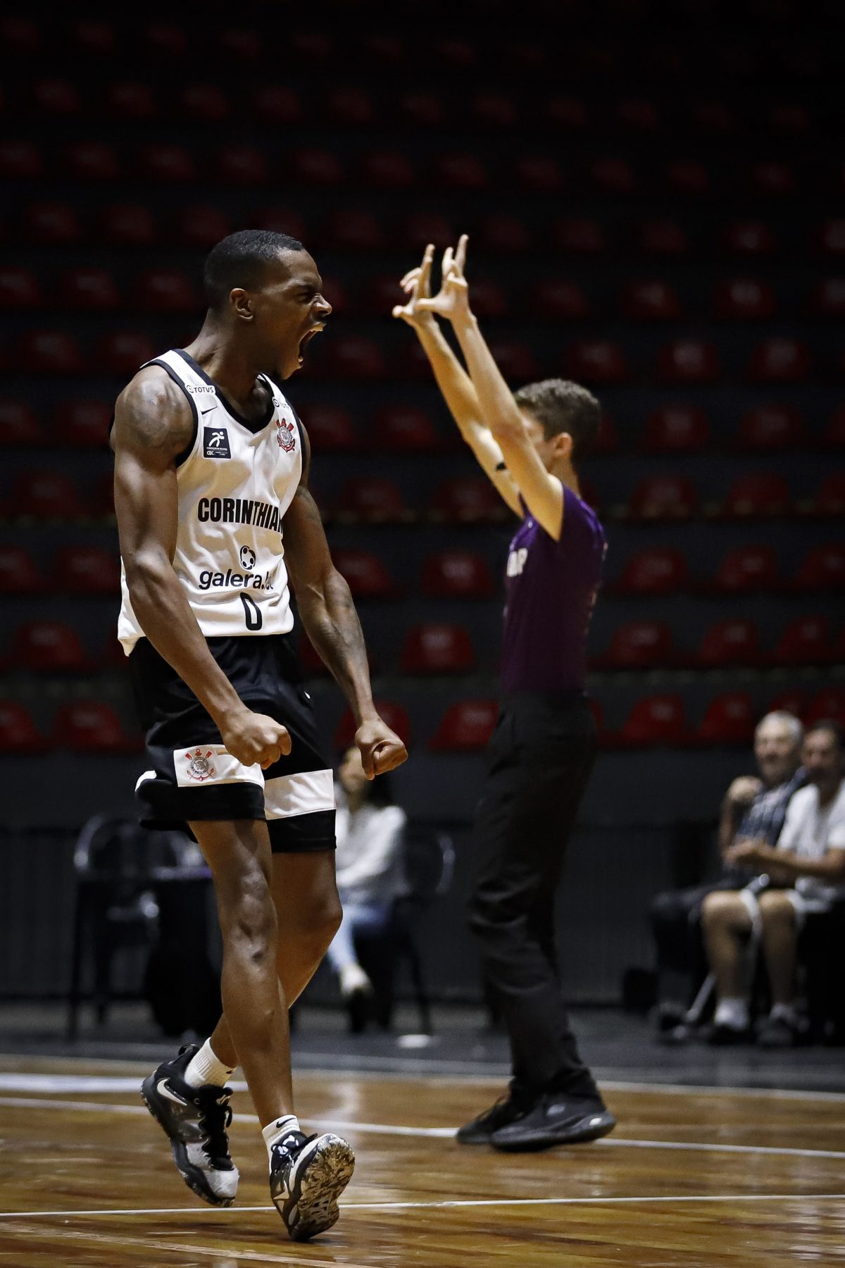 Mãozinha acerta o lance livre.
