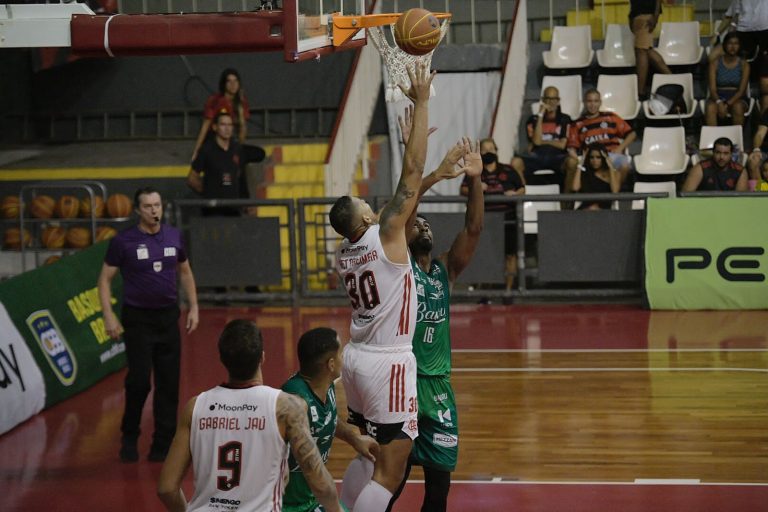 Bauru pega rebote ofensivo.
