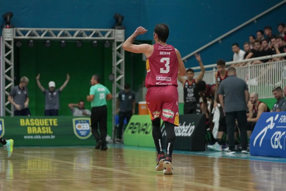 Deryk acerta arremesso de dois pontos.