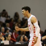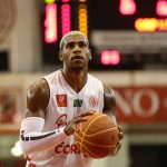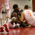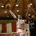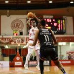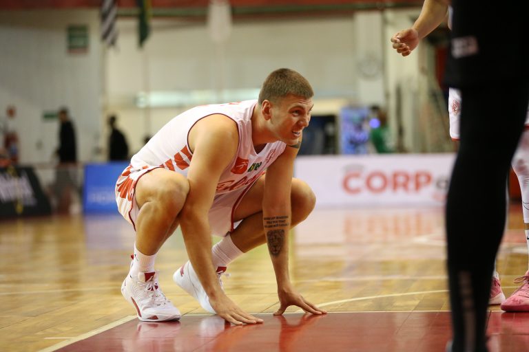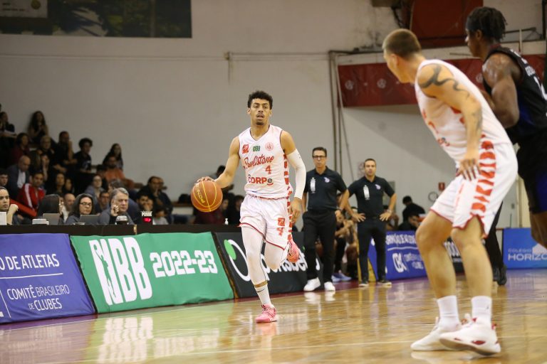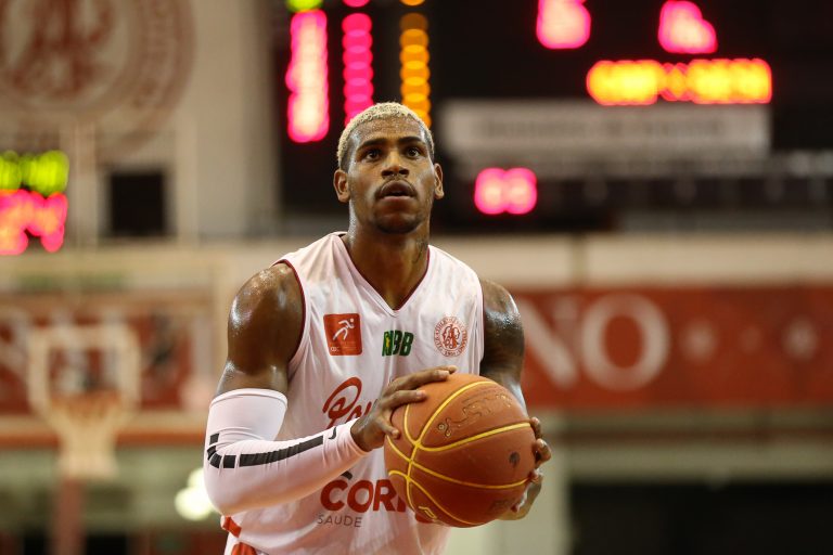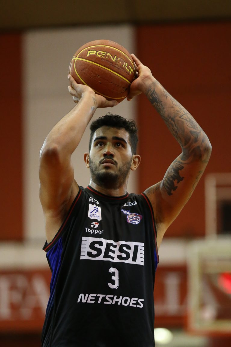 Lucas Dias erra tentativa para três pontos.