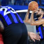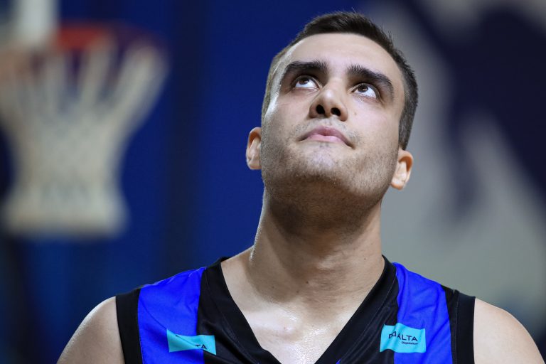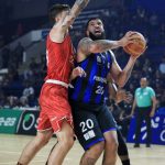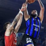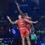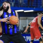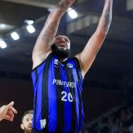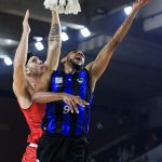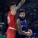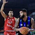 Dikembe pega rebote ofensivo.