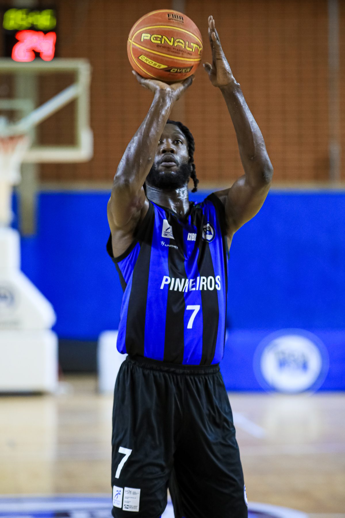 Sena acerta arremesso de dois pontos.