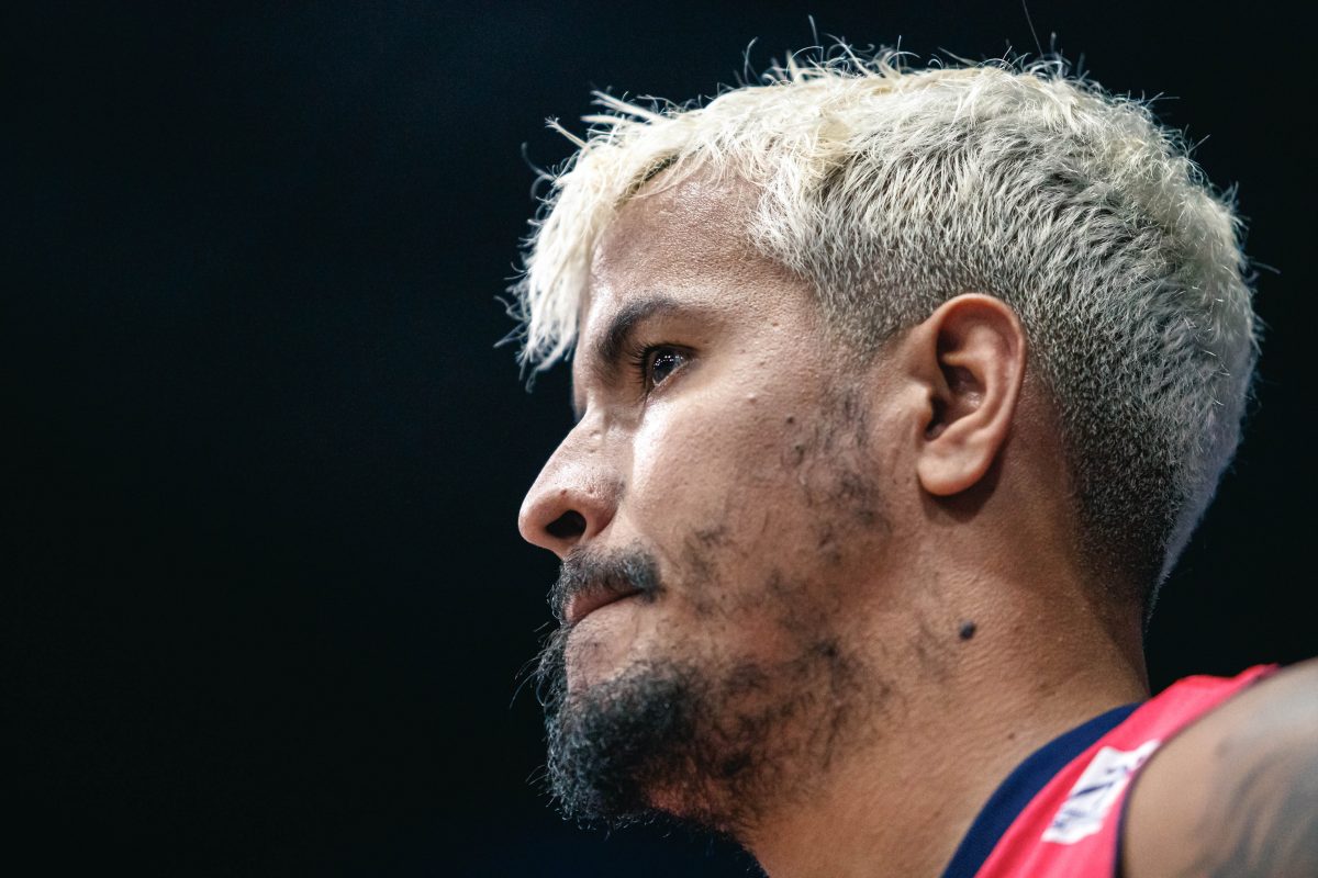 Lucas Dias pega rebote defensivo.