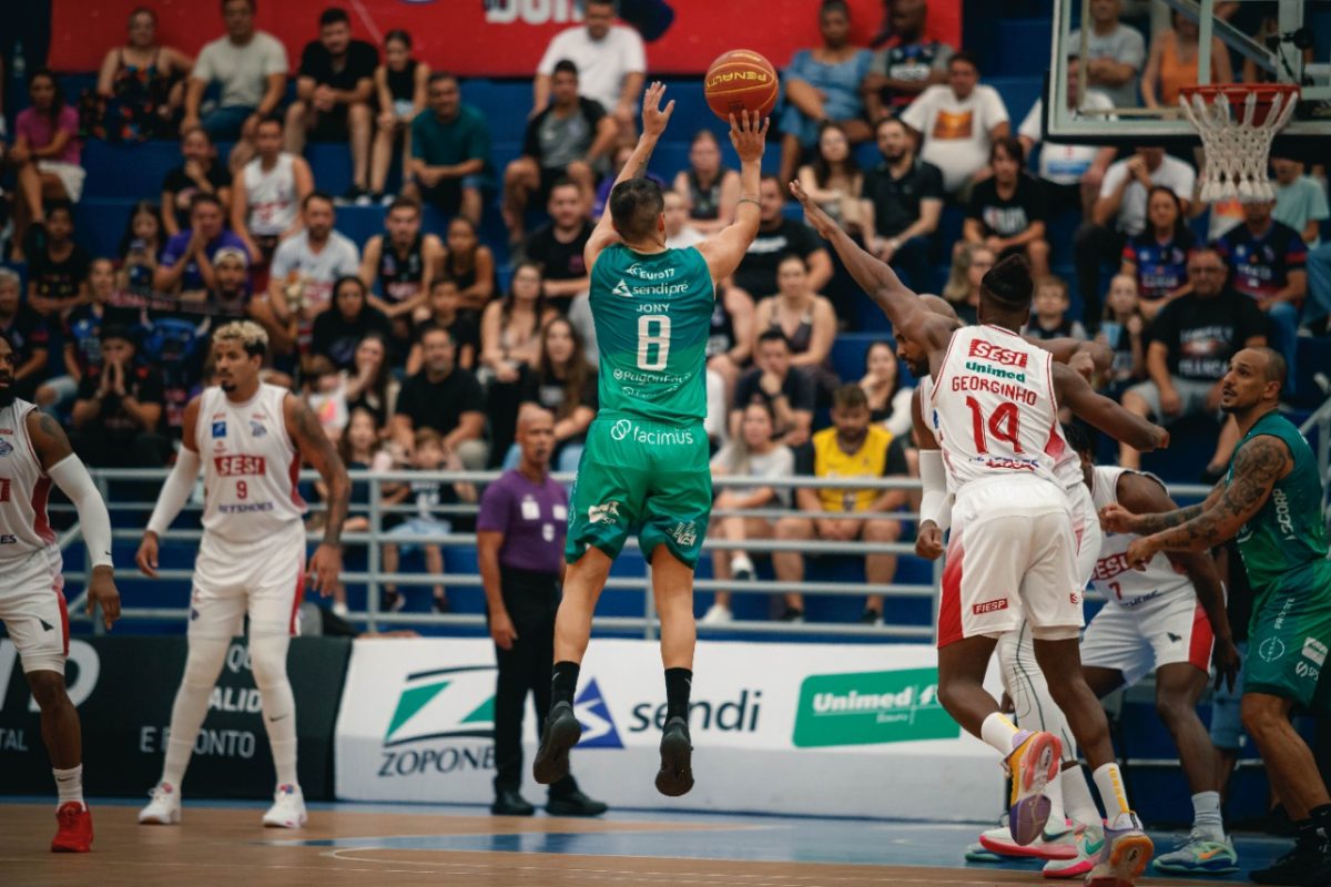É de três! Jhonatan acerta arremesso de três pontos.